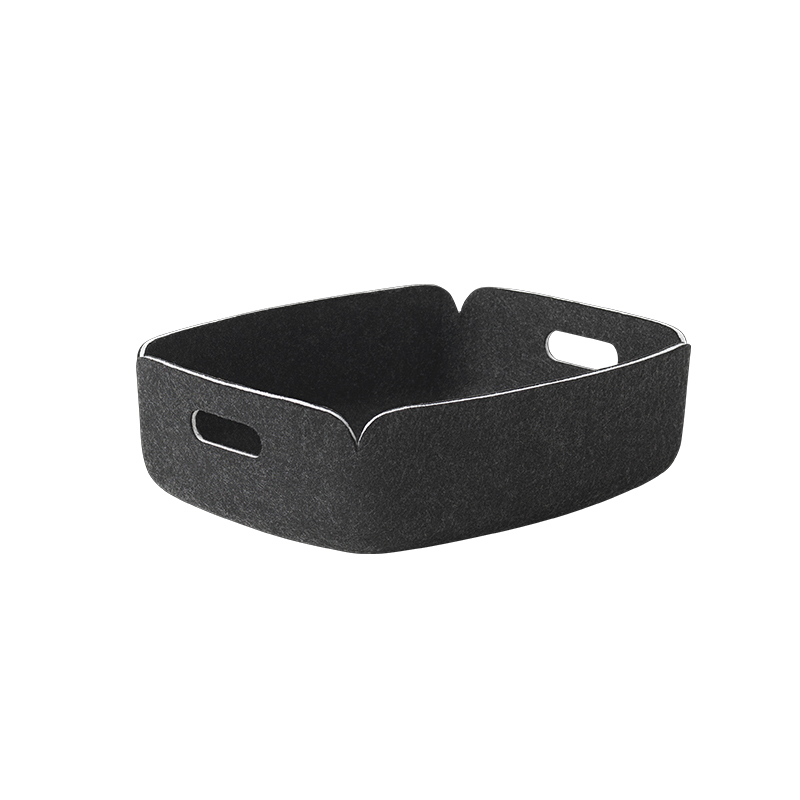 La série Restore de Mika Tolvanen de Muuto s'agrandit avec le Restore Tray, un panier aux dimensions réduites qui peut servir à la fois de rangement et de plateau. 100% écologique, il est réalisé en feutre produit à partir de bouteilles en plastique. La finition de Restore confère un certain raffinement à l'objet qui s'intègre aussi bien dans un salon pour les magazines ou les objets qui trainent, que dans un bureau pour ranger des papiers.