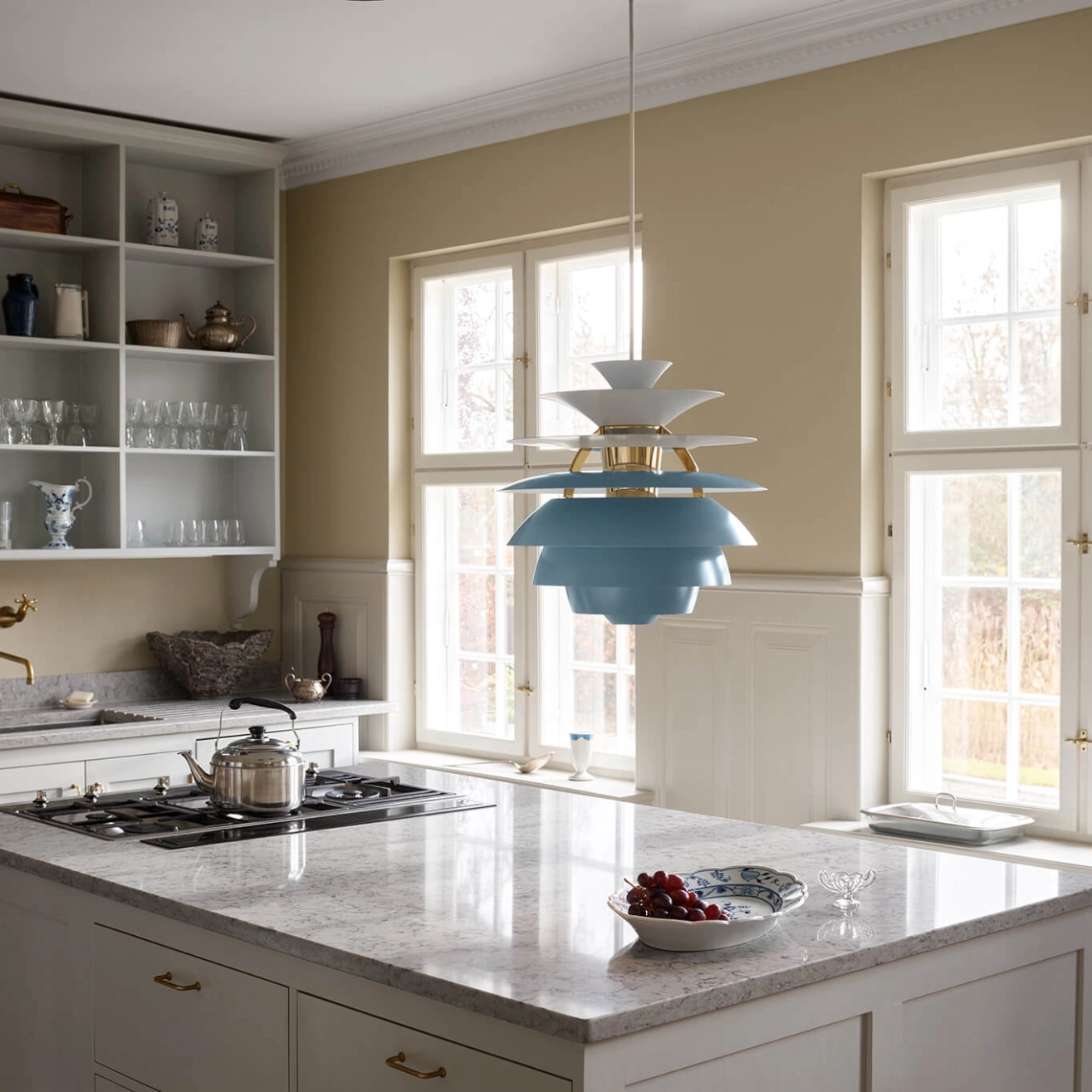 La marque danoise Louis Poulsen a été créée en 1874, née de la tradition du design scandinave où la forme suit la fonction. Louis Poulsen devient le propriétaire de l’entreprise en 1906 après la mort de son oncle Ludvig R. Poulsen. L’approche de Louis Poulsen au développement architectural a commencé grâce à sa collaboration avec l’un des concepteurs lumière reconnu dans le monde, Poul Henningsen. C’est donc en 1924 que le designer débute sa collaboration avec Louis Poulsen lighting. Leur objectif est la participation à « l’exposition internationale des arts décoratifs et industriels modernes ». En 1925, la collaboration porte ses fruits et les lampes Poul Henningsen remportent la médaille d’or. Suite à cette victoire, les deux hommes commercialisent leurs produits en France, en Angleterre et au Danemark.