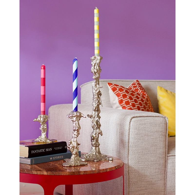 Le bougeoir Drip de Pols Potten est une véritable œuvre d'art qui s'invite dans votre quotidien. Son créateur, Pascal Smelik, tire son inspiration du concept de difformité, ce qui se reflète magnifiquement dans le bougeoir Drip. Son design à la fois ludique et élégant vous invite à illuminer l'espace, que ce soit en l'intégrant à la décoration de votre table pour une soirée spéciale ou en le mettant en valeur en tant qu'objet autonome. L'expérience est encore plus captivante lorsque vous combinez plusieurs bougeoirs Drip de différentes tailles. Drip est disponible en deux tailles (14 et 25 centimètres) et en deux coloris (argenté et doré). L'effet obtenu est magique et ajoute véritablement une dimension unique à votre espace.