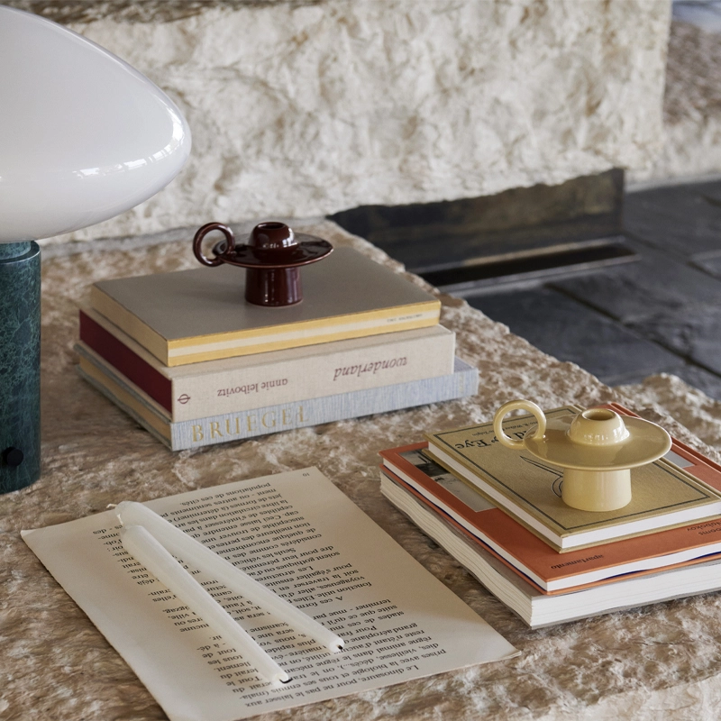 And Tradition édite la collection Momento, créée par l'artiste et designer de renom Jaime Hayon. Momento — "moment" en espagnol – est une collection ludique d'articles de décoration intérieure conçus pour nous encourager à ralentir et à savourer les plaisirs simples de la vie.  « Momento a quelque chose à voir avec l'amour, il a quelque chose à voir avec cette idée de s'accorder un petit moment de plaisir. Ce sont des objets qui font déjà partie de votre vie - ce sont des objets que vous voulez avoir près de vous », explique Hayon.  Momento incarne la simplicité et la polyvalence la plus totale et à chaque instant, elle enrichit tous les petits rituels du quotidien. La collection Momento comprend une cruche, un bougeoir et deux vases ; chacun est issu d’une réflexion qui combine le langage sculptural et les couleurs signatures de Hayon. Le bougeoir Momento rend hommage à la forme classique du bougeoir, historiquement conçu pour être transporté d'une pièce à l'autre, avec une esthétique à la fois nostalgique et contemporaine. Coulé en barbotine et émaillé avec précision par des artisans au Portugal, le bougeoir Momento est disponible en quatre couleurs inspirées des œuvres d'art du designer Hayon. Conçus pour ajouter une touche de couleur dans les environnements résidentiels et d'accueil, les bougeoir Momento s'adaptent à la taille commune des bougies coniques et créent une ambiance chaleureuse et conviviale lorsqu'ils sont allumés.