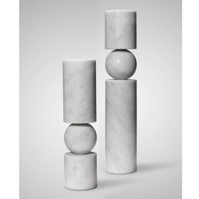 Créé par Lee Broom, Fulcrum est un chandelier sculptural et monolithique dont la tige semble s'équilibrer sur une sphère centrale. En marbre de Carrare ou Marquina, cette réinterprétation du chandelier classique se démarque par ses formes essentielles et son élégance moderne. Disponible en deux tailles, le bougeoir se décline aussi en version verre transparent.