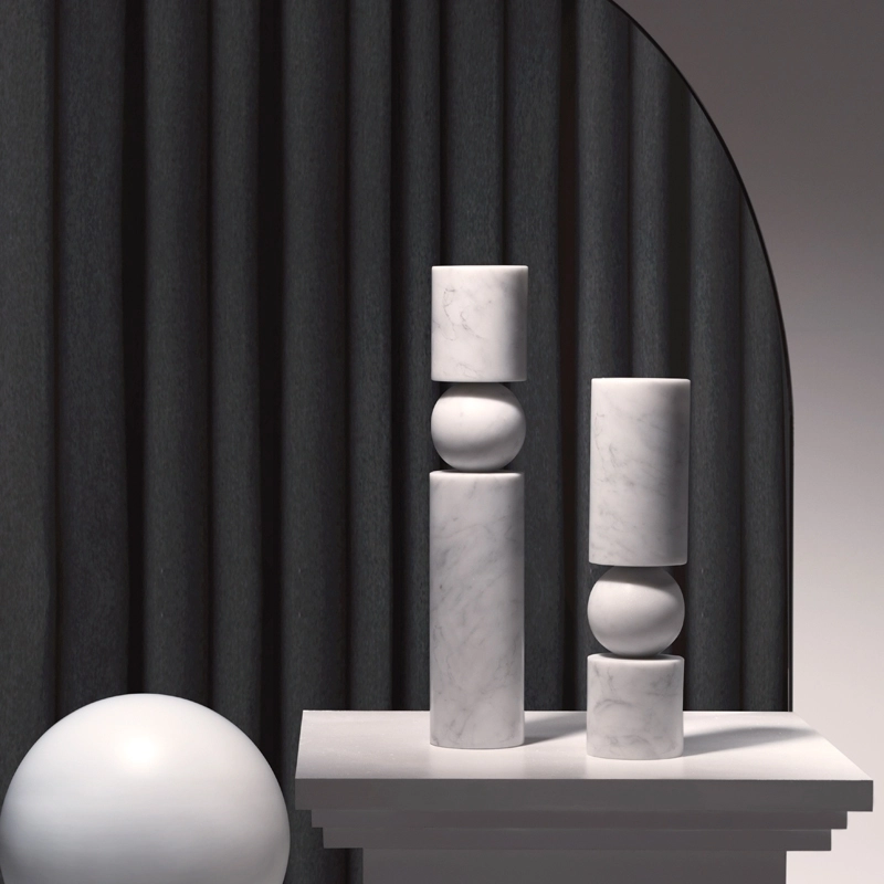 Créé par Lee Broom, Fulcrum est un chandelier sculptural et monolithique dont la tige semble s'équilibrer sur une sphère centrale. En marbre de Carrare ou Marquina, cette réinterprétation du chandelier classique se démarque par ses formes essentielles et son élégance moderne. Disponible en deux tailles, le bougeoir se décline aussi en version verre transparent.