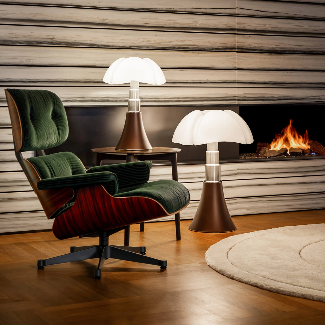 Élégante, iconique et parfaitement équilibrée, la lampe Pipistrello Bronze perpétue l’héritage créatif de Gae Aulenti et s’impose comme une pièce maîtresse qui transforme la lumière en véritable expression artistique.