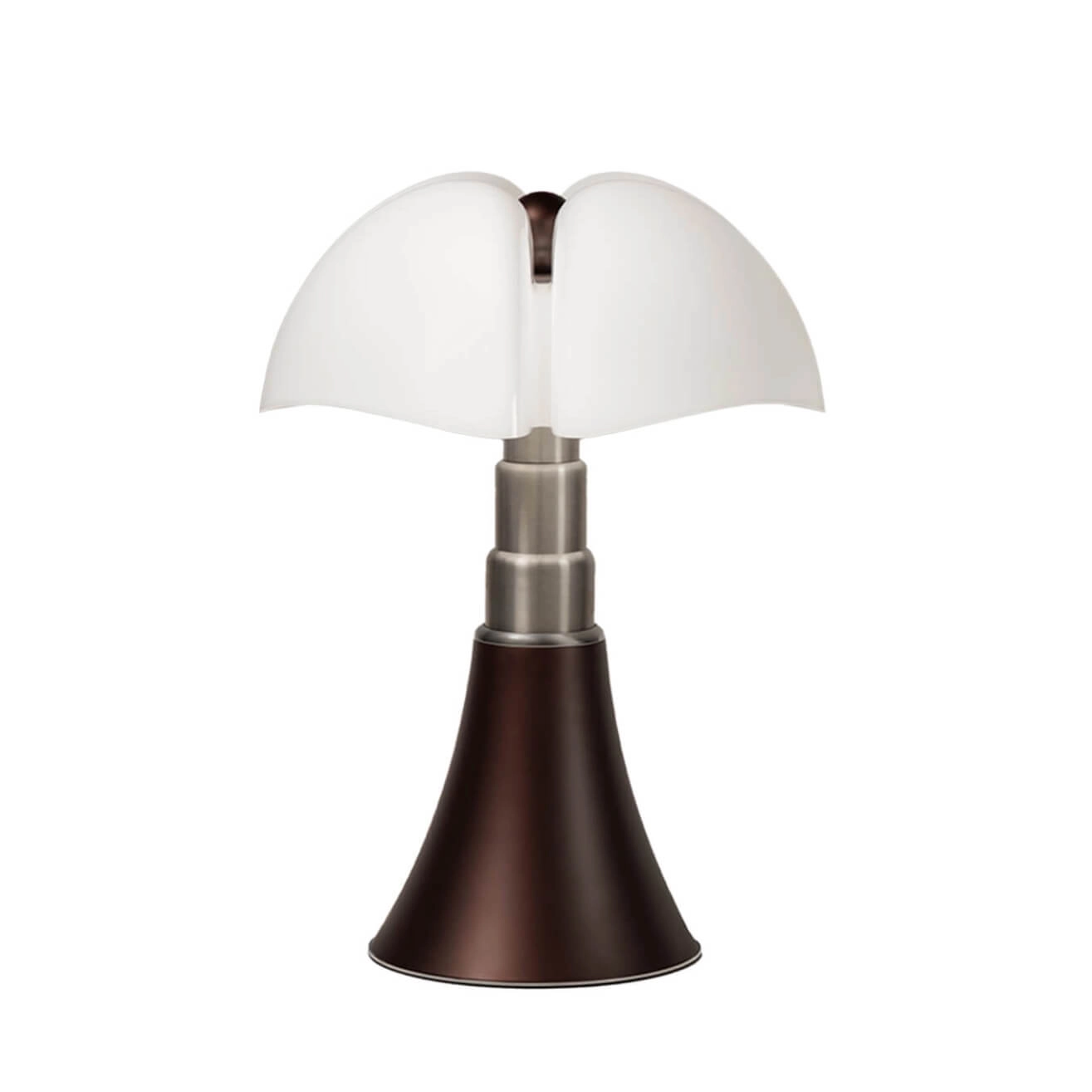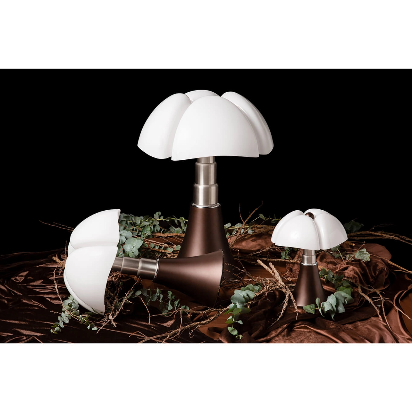 Dans cette version Bronze, la lampe révèle un dialogue subtil entre modernité et classicisme. La teinte métallique patinée accentue la profondeur visuelle de la pièce et en fait un véritable objet de design, à la fois décoratif et fonctionnel. Chaque élément témoigne du savoir-faire de Martinelli Luce, maison italienne de référence dans l’univers du luminaire.