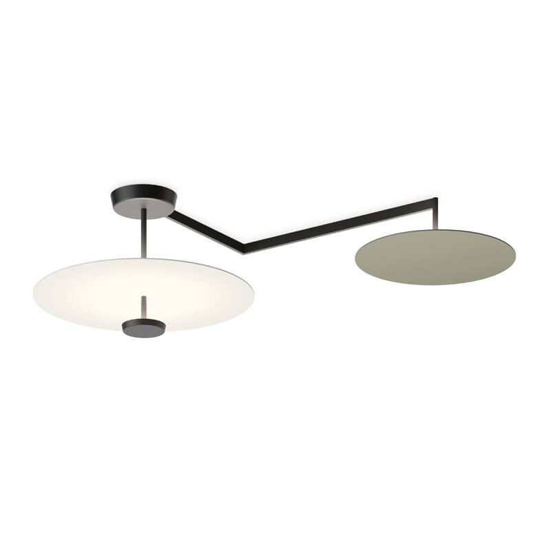 Les suspensions et plafonniers sont disponibles avec deux ou quatre disques de taille moyenne ou plus petite. Déployés en tandem, les plus petits disques se complètent pour capter et renvoyer la lumière sur les plus grands, créant ainsi des bulles de lumière douce et diffuse.