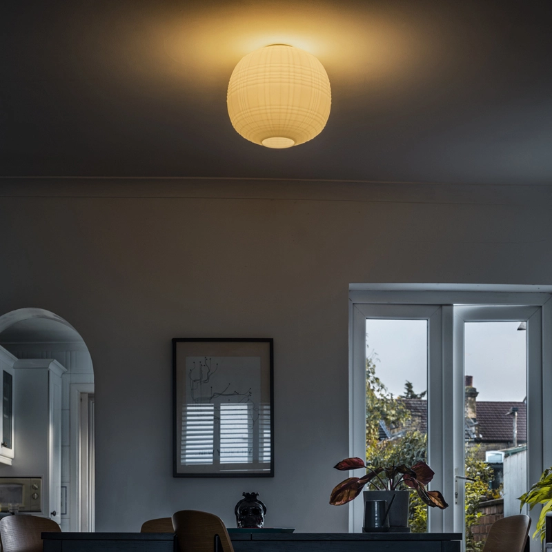 Le plafonnier Tartan a été conçu par les designers Ludovica & Roberto Palomba pour la maison italienne Foscarini. Ce plafonnier en verre soufflé reproduit l’effet visuel du célèbre tissu écossais, grâce à une technique particulière de soufflage à la bouche. Le plafonnier Tartan Foscarini se caractérise par des lignes et des plis qui parcourent toute la surface du diffuseur, en un jeu graphique très original d’ombres et de lumières. Doté d'un fort impact visuel, qu’il soit allumé ou éteint, Tartan est adapté aux environnements privés et professionnels.