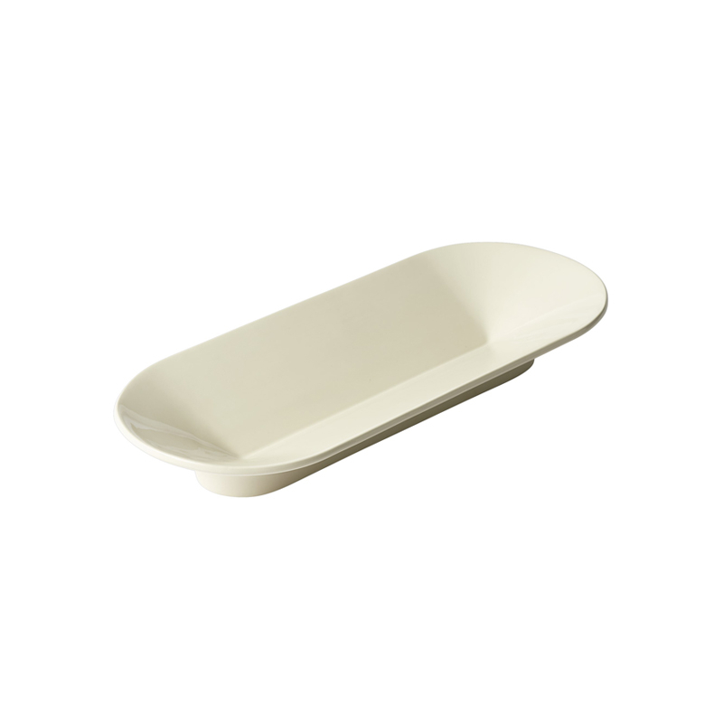 La coupe Mere dessinée par le Studio Kaksikko et éditée par Muuto est une pièce sculpturale aux finitions raffinées. Elle est aussi belle au centre d'une table qu'en exposition ailleurs dans la maison, utilisée pour contenir des objets ou simplement comme objet de décoration. Sa forme caractéristique est simple et ingénieuse, créée à partir de la ligne centrale qui se replie pour former un récipient. Mere est surélevée par une base discrète, ce qui donne l’impression que la coupe flotte. Le centre de table Mere de Muuto est recouvert d'une finition très brillante qui renforce son aspect sculptural.
