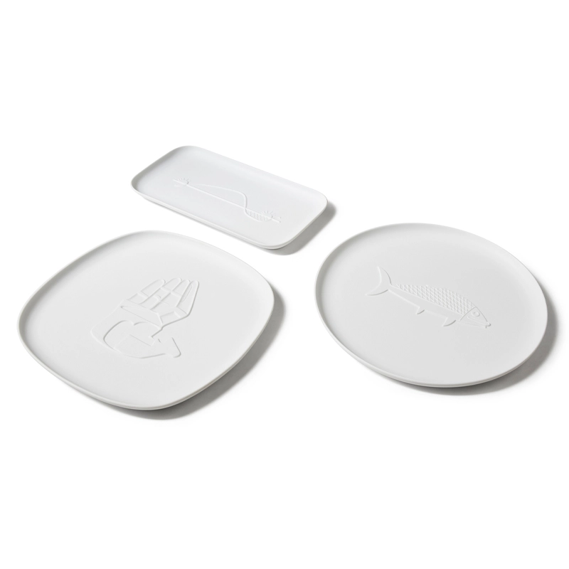 Cassina s'inspire du génie de Le Corbusier pour créer une collection exclusive de trois plateaux modernes en pure porcelaine non émaillée. La collection de plateaux Chandigarh est née de la collaboration entre Cassina et Ginori 1735. Chaque plateau, inspiré des dessins symboliques de la ville de Chandigarh conçue par Le Corbusier, présente des bas-reliefs uniques. Ces pièces d'art fonctionnelles incarnent des sujets tracés par le Maître en 1956 : une main ouverte symbolisant la paix sur un plateau carré aux angles arrondis, un poisson sur un plateau rond, et le mouvement du soleil sur un plateau rectangulaire. La collection de plateaux en porcelaine Chandigarh fusionne l'inspiration architecturale de Le Corbusier avec l'artisanat exceptionnel de Ginori 1735, offrant une expérience visuelle raffinée et une connexion avec l'héritage du célèbre architecte.