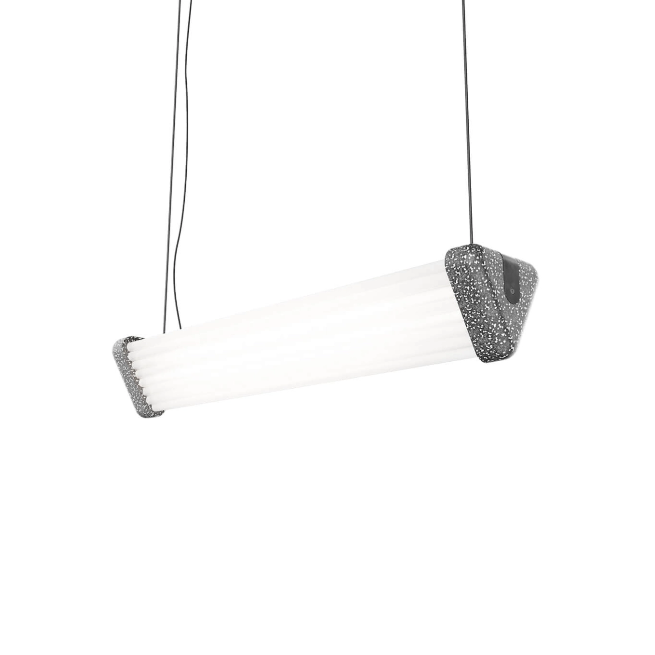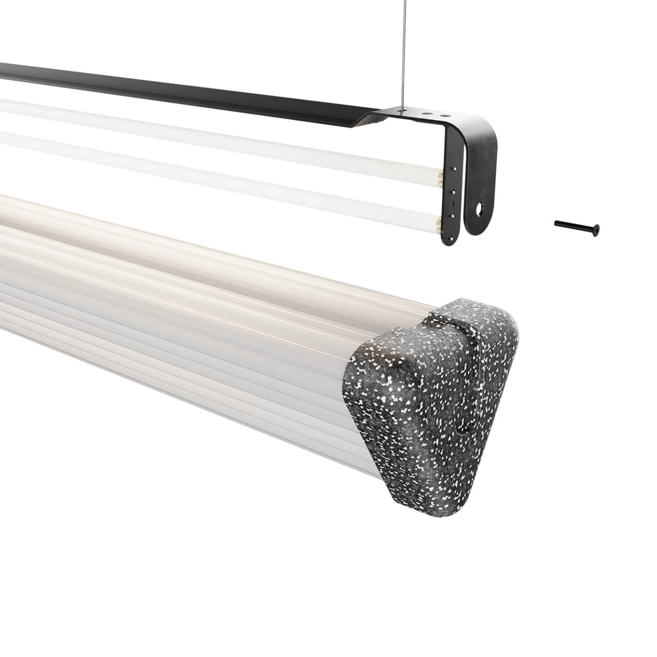 Cette suspension se distingue par son design ingénieux et son approche écoresponsable. Elle utilise un tube fluorescent hors d’usage comme diffuseur, associé à une structure en polystyrène expansé (fourni par Knauf Industries) qui offre une protection efficace contre les chocs et les vibrations. La Polix n’est pas seulement un bel exemple d’upcycling, c’est aussi une création futée et bien pensée. Avec son design unique, la suspension se règle facilement et la fixation se fait par des trous oblongs qui permettent un alignement et un serrage simple. La Polix 5.9 diffuse une lumière fonctionnelle idéale pour éclairer vos espaces de vie, comme une cuisine ou un bureau.