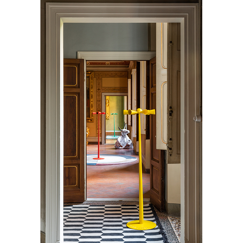 Le porte-manteau Cessato Allarme a été créé en 1986 par le Studio De Pas, D'Urbino et Lomazzi, et édité par Poltronova en 1991. Le design particulier de Cessato Allarme, qui signifie littéralement "Alarme Terminée", est inspiré des trompettes d'alarme. Elles sont ici recréées pour en faire les portants du porte-manteau. Fabriqué en métal et disponibles dans cinq couleurs vives, le porte-manteau Cessato Allarme ajoute une touche pop et joyeuse à votre intérieur sans pour autant en oublier sa fonctionnalité.