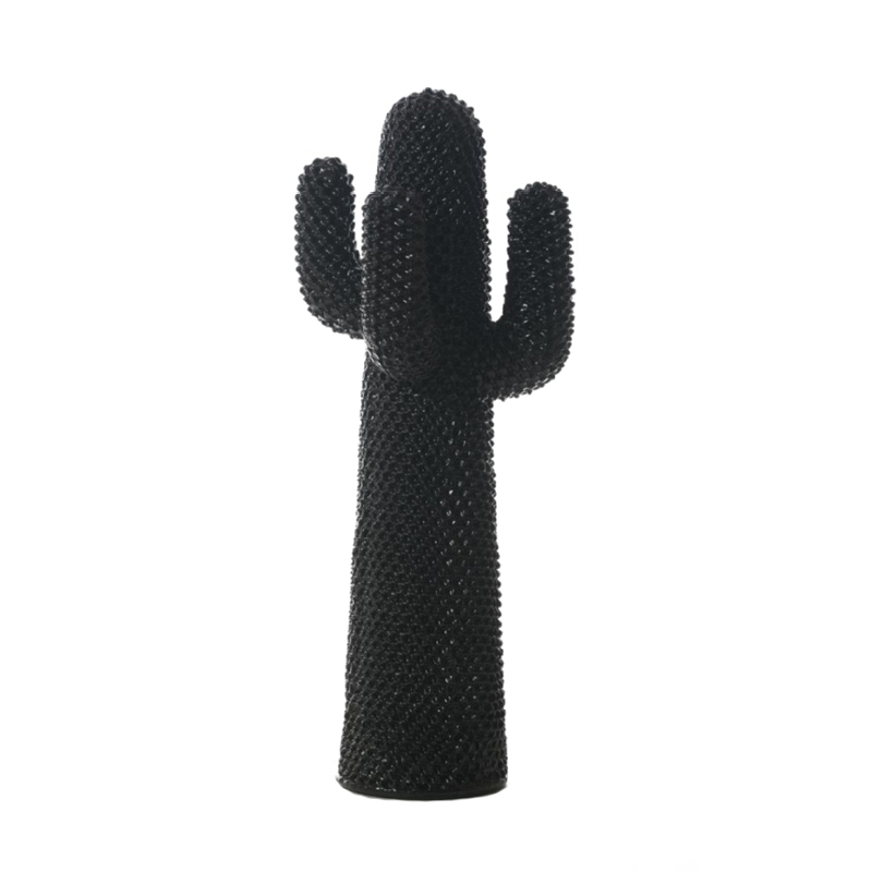 Dessiné en 1972 par Guido Drocco et Franco Mello, Cactus est devenu un objet culte de la collection italienne Multipli de la marque Gufram. Ce portemanteau, qui ne manque pas d'humour, est réalisé en polyuréthane expansé et peint en noir ou en rouge. Extravagant, il s'impose en tant qu'objet de décoration insolite et hors du commun pour la chambre ou l'entrée de la maison. Ce portemanteau Cactus est la représentation d'un design avant-gardiste à la forme gracieuse, paisible et réconfortante. La philosophie de la marque italienne Gufram se résume en quatre mots : qualité, innovation, design et recherche. C'est pourquoi la plupart de ses créations sont exposées dans de nombreuses galeries et musées d'art contemporain dont le MoMa à New York.