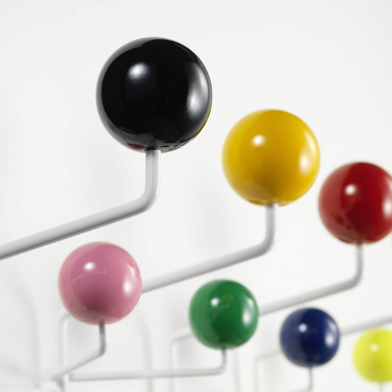 Le duo Charles et Ray Eames crée en 1953 un portemanteau fantaisiste pour Vitra. Telle une sculpture insolite et pleine de gaieté, Hang it all est un portemanteau qui permet, grâce à ses boules en bois aux couleurs vives, de suspendre chapeaux, écharpes, vestes et manteaux. Il remplace les banales patères et incite les enfants à y suspendre « toutes leurs affaires », comme son nom l'indique, aussi bien leurs poupées que leurs patins à roulettes ! Le portemanteau Hang it all peut être étendu à l'infini et constitue une alternative ludique aux crochets monotones, aussi bien dans la chambre des enfants que dans l'entrée de la maison. Hang it all< est un accessoire de la vie quotidienne plein de fantaisie, exposé au Vitra Design Museum. Plus qu'un must-have aujourd'hui, il égaye votre intérieur de façon originale, et constitue une idée de cadeau qui allie l'utile à l'agréable.