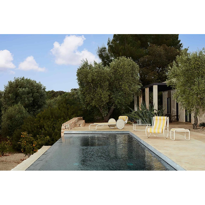 Le pouf Locus Solus est une réédition inédite par Exteta et Jacquemus du modèle créé en 1964 par la designer italienne Gae Aulenti. Ce pouf d'extérieur s'harmonise parfaitement avec les autres éléments de la collection Locus Solus et offre une élégance intemporelle à votre espace extérieur. La structure du pouf Locus Solus est en acier tubulaire inoxydable poudrée en beige. Ce processus garantit à la fois durabilité et résistance aux intempéries, faisant de cette pièce un choix idéal pour les environnements extérieurs. Ce pouf outdoor Locus Solus, fruit de la collaboration entre Exteta et Jacquemus, incarne l'alliance réussie entre le design intemporel de Gae Aulenti et la créativité contemporaine apportée par Simon Porte Jacquemus par la création des tissus de revêtement : beige et rayures jaunes Como. Cette réédition du pouf Locus Solus offre non seulement une fonctionnalité exceptionnelle, mais aussi une esthétique colorée, vive et raffinée qui enrichira votre espace extérieur d'une touche de modernité et d'élégance.