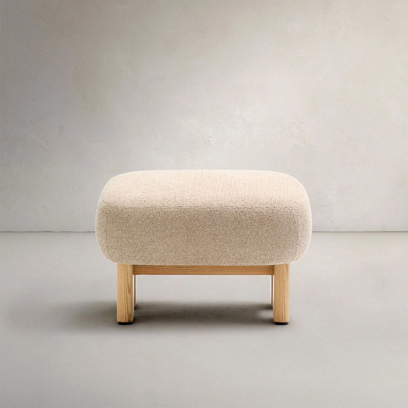 Pouf NEMA Tissu bouclette beige / Frêne naturel KAVE HOME