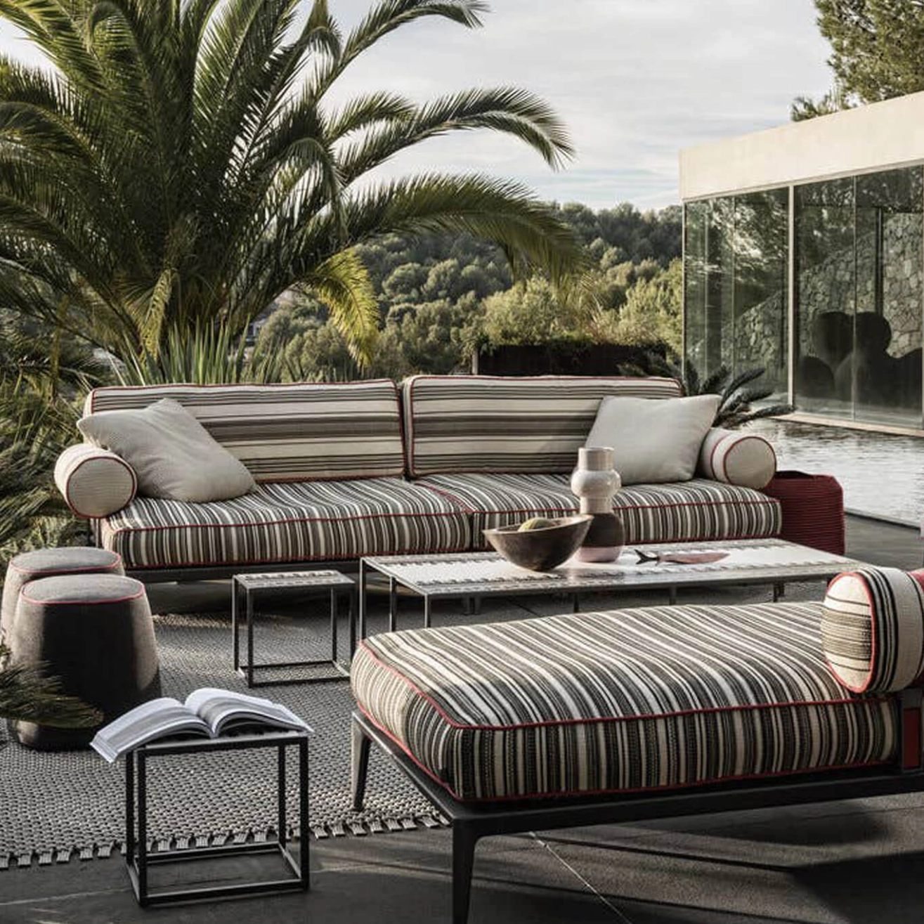 Canapé extérieur RIBES linéaire Jacquard Elisir rayures étroites noir/corde B&B ITALIA