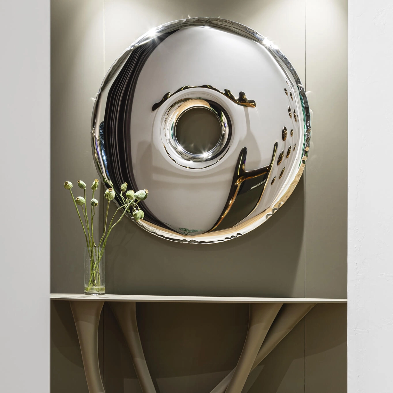 Le miroir Rondo de Zieta s’impose comme une pièce emblématique du design contemporain grâce à sa forme parfaitement circulaire et à la finesse de ses finitions. Conçu par le designer Oskar Zięta, le miroir Rondo se distingue par son équilibre subtil entre minimalisme et sophistication. Ses contours délicatement travaillés et son aspect épuré lui permettent de trouver sa place aussi bien dans une entrée que dans un salon ou une chambre, apportant immédiatement luminosité et profondeur à l’espace. Pensé pour sublimer chaque intérieur, le miroir Rondo reflète le savoir-faire unique de Zieta, qui allie sens du détail et exigence matérielle. Qu’il soit accroché seul en pièce forte ou intégré à une composition murale, il capte la lumière et crée un jeu de perspectives qui enrichit visuellement l’atmosphère. Avec ce modèle, la marque démontre encore une fois sa capacité à proposer des objets à la fois fonctionnels, élégants et intemporels.