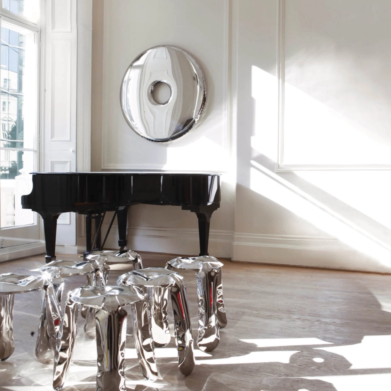 Fondé en 2010 par Oskar Zięta, Zieta Studio est une marque polonaise emblématique de mobilier design contemporain, reconnue pour son approche expérimentale et sculpturale du métal. Basée à Wrocław, en Pologne, l’entreprise s’impose comme un acteur avant-gardiste du design international grâce à sa technologie brevetée FiDU (Free Inner Pressure Deformation), un procédé innovant qui consiste à gonfler des plaques métalliques sous pression pour créer des formes tridimensionnelles uniques. Parmi les créations les plus emblématiques de Zieta, on retrouve le tabouret Plopp, véritable icône du design contemporain, le miroir Rondo, ou encore la G-Table, alliance parfaite entre artisanat de précision, esthétique organique et technologie de pointe.