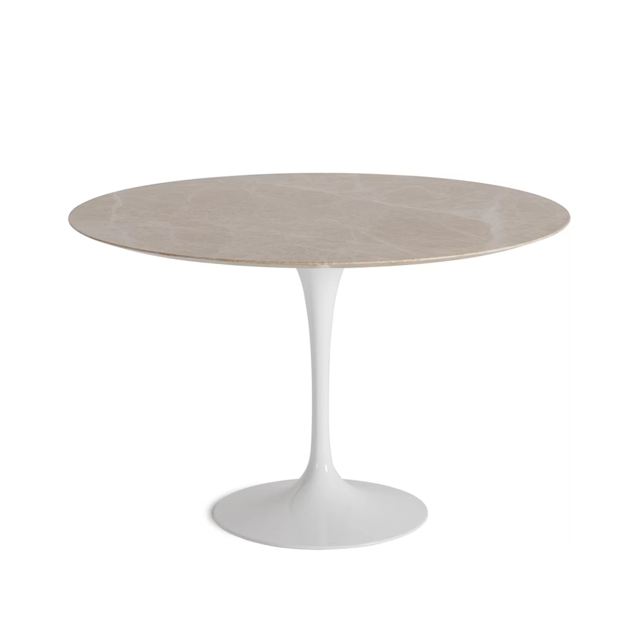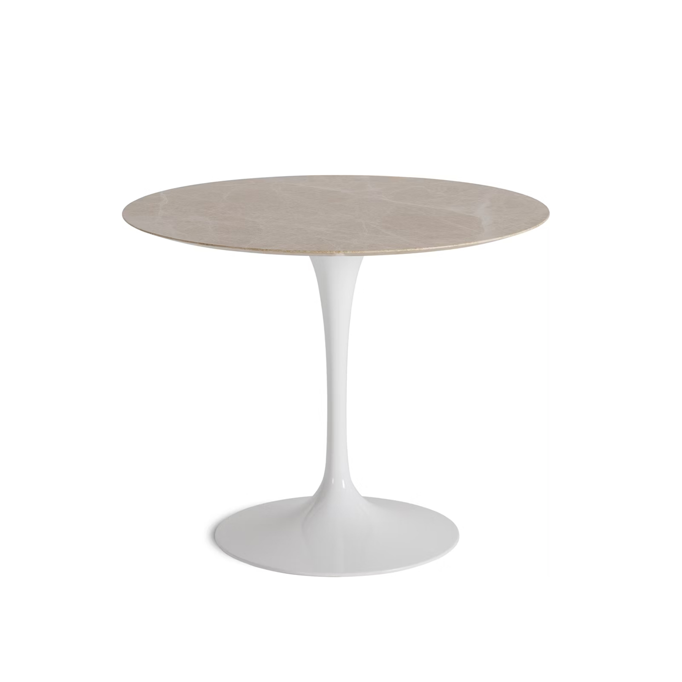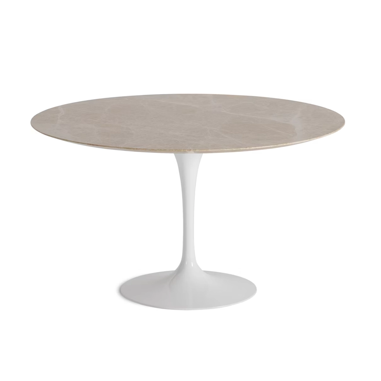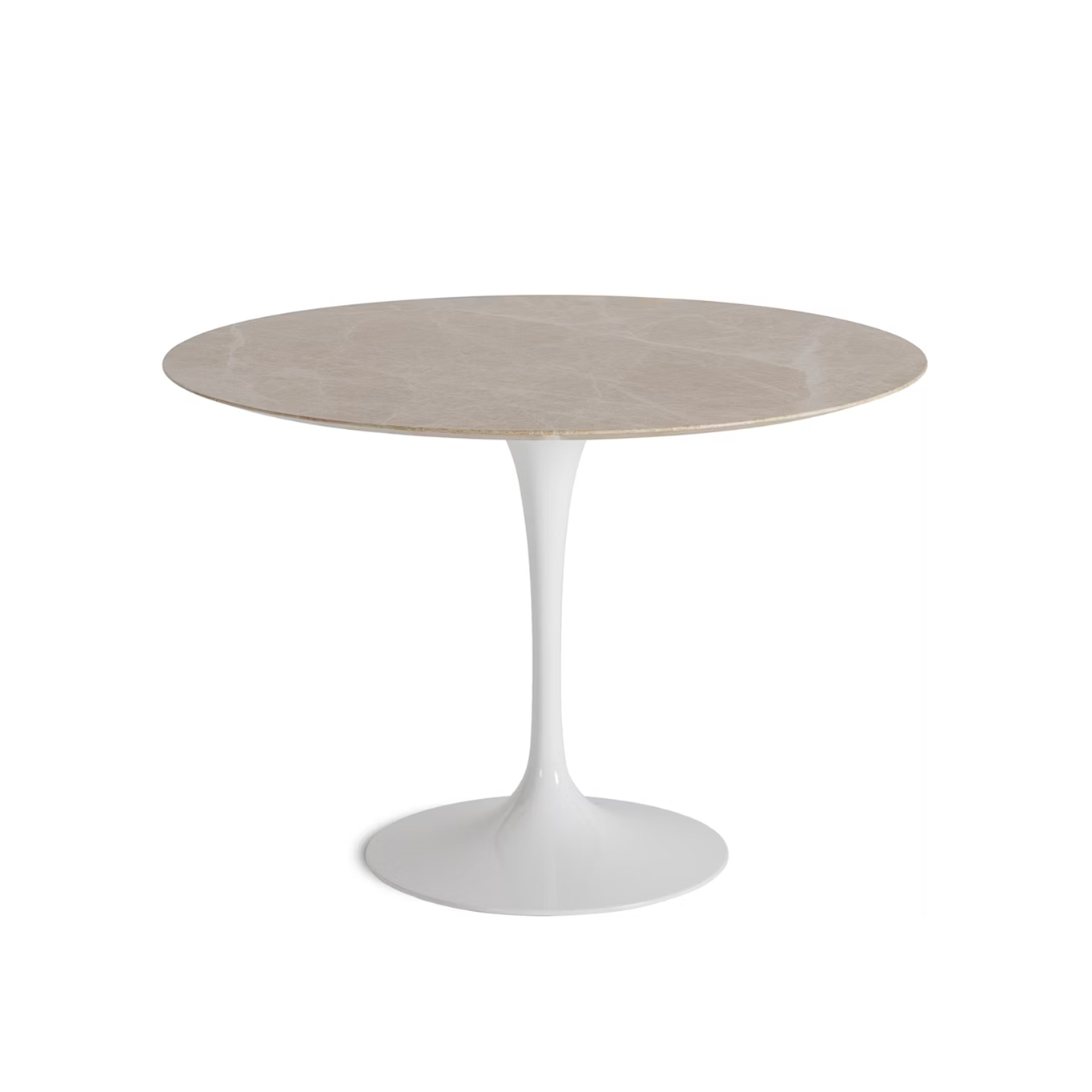 Les tables d'Eero Saarinen, conçues dans les années 50, font partie des meubles cultes de l'histoire du design. Intemporelles, copiées mais jamais égalées, elles allient sobriété et élégance et trouvent leur place dans tout type d'intérieur. Le plateau de la table Saarinen est caractérisé par un chant biseauté qui accentue sa légèreté, quelque soit sa dimension. Cette table design Knoll est disponible avec un plateau stratifié blanc ou marbre. Elle est aussi déclinée en guéridon et table basse.