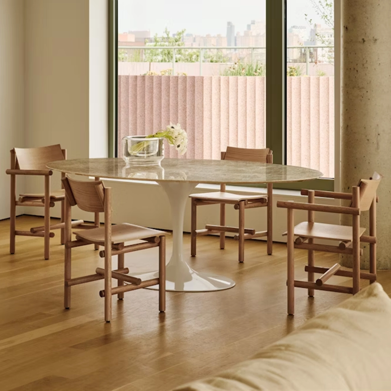 Knoll, marque emblématique du mobilier design contemporain, incarne depuis plus de 80 ans l’alliance parfaite entre innovation, modernisme et esthétisme intemporel. Fondée en 1938 aux États-Unis par Hans et Florence Knoll, la maison s’est imposée comme une référence mondiale du mobilier design d'exception. Parmi ses créations les plus iconiques figurent la table Saarinen et la chaise Tulip, imaginées par le célèbre designer Eero Saarinen, mais aussi la collection Bertoia, le lounge Platner et le légendaire fauteuil Barcelona.