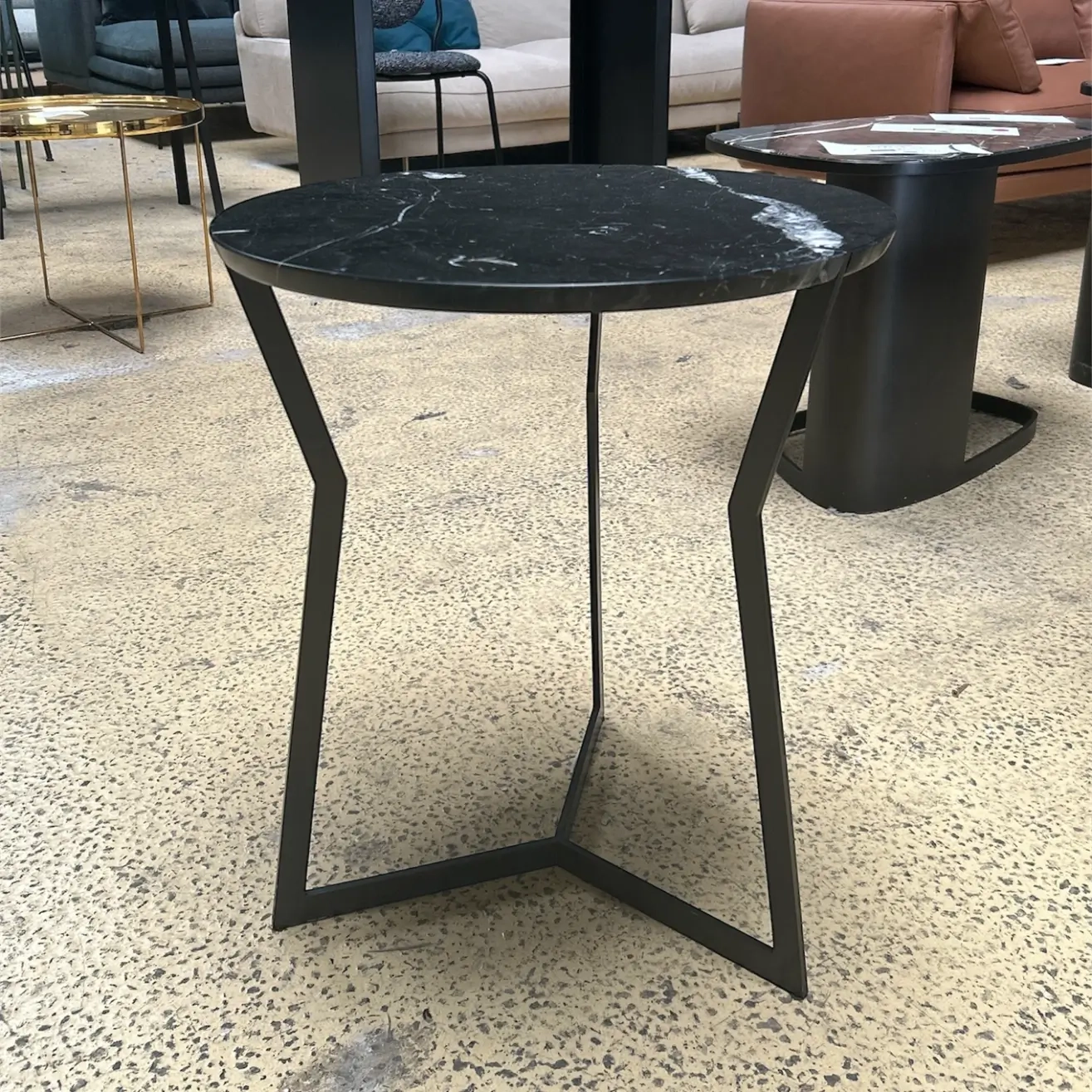 La table basse Star, conçue par Patricia Urquiola pour Coedition, exprime avec subtilité l’équilibre entre douceur formelle et puissance matérielle. Son plateau en marbre noir, soigneusement poli, capte la lumière et révèle des veinages délicats qui rendent chaque pièce unique, presque sculpturale. Les contours arrondis du plateau s’accordent avec un piètement aux lignes nettes et équilibrées, dessinant une silhouette à la fois fluide et affirmée. L’association du marbre et de la structure épurée confère à la Star une présence sobre mais singulière, où la matière devient le véritable point focal. Utilisée seule comme pièce d’accent ou en composition avec d’autres tables de la collection, la Star en marbre noir apporte profondeur et élégance à l’espace. Elle instaure une atmosphère feutrée et raffinée, idéale aussi bien pour des intérieurs résidentiels que pour des espaces de réception.