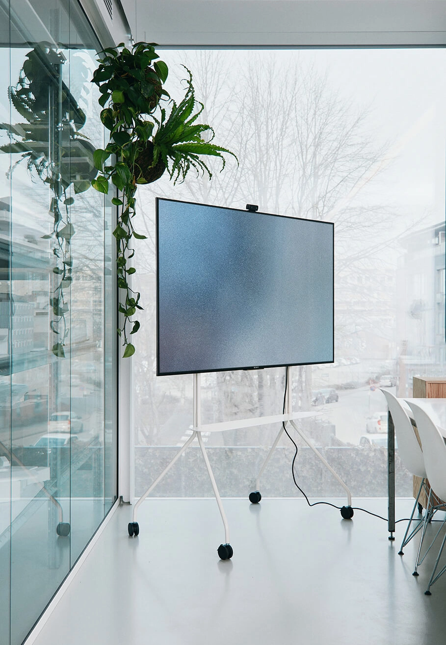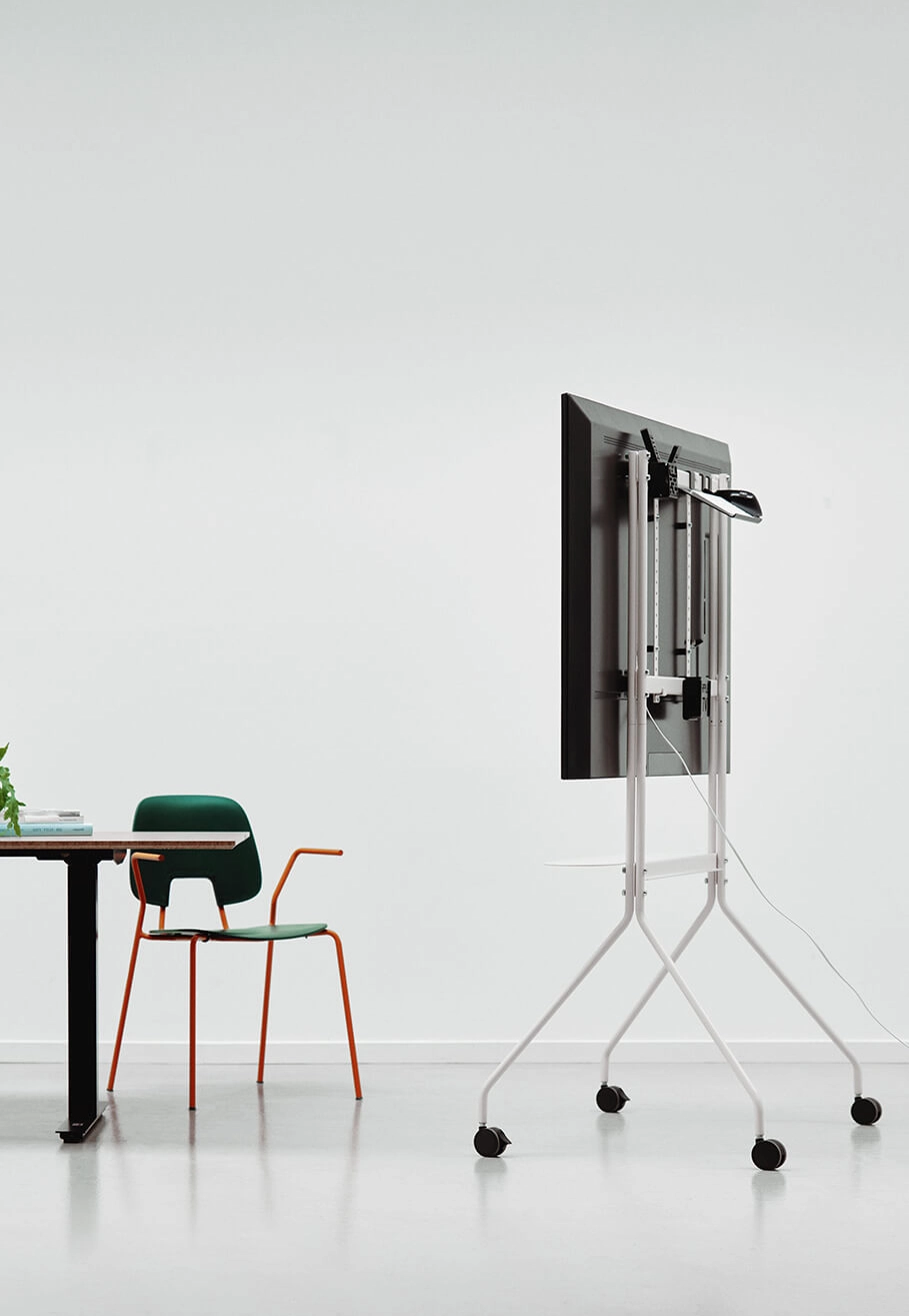 Le support TV Moon Pro de Pedestal apporte une touche moderne à toute salle de réunion, stand d’exposition ou showroom. Grâce à sa mobilité, ce support permet de déplacer le téléviseur facilement, offrant ainsi une visibilité et une accessibilité optimales. Sa flexibilité en fait une solution idéale pour organiser des réunions en dehors du cadre habituel. Avec son design simple et élégant, le support Moon Pro s'intègre parfaitement dans des environnements de bureau contemporains. Il peut être complété par une sélection de câbles et d’organisateurs, renforçant ainsi à la fois son esthétique et sa fonctionnalité. Les supports Pedestal sont conçus pour offrir un rangement ordonné tout en permettant un accès facile aux accessoires, contribuant ainsi à maintenir un environnement propre et bien organisé pour toutes sortes de présentations ou d’événements.