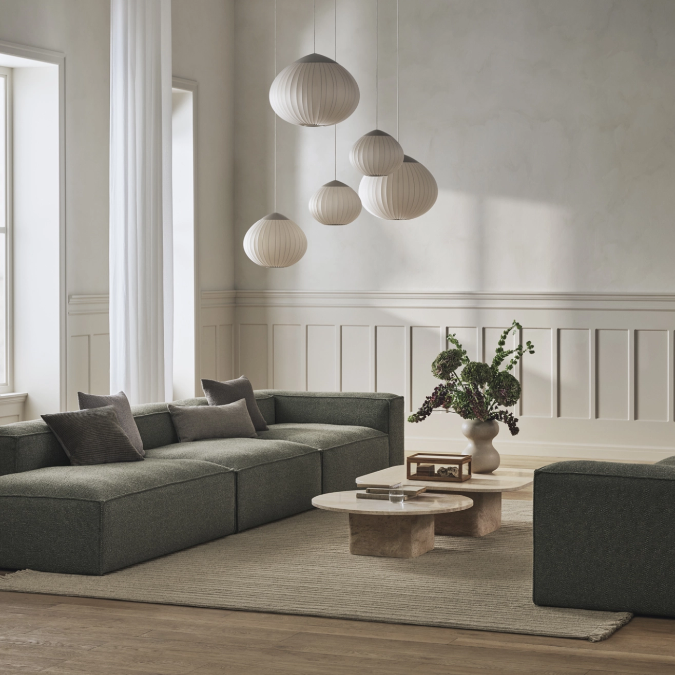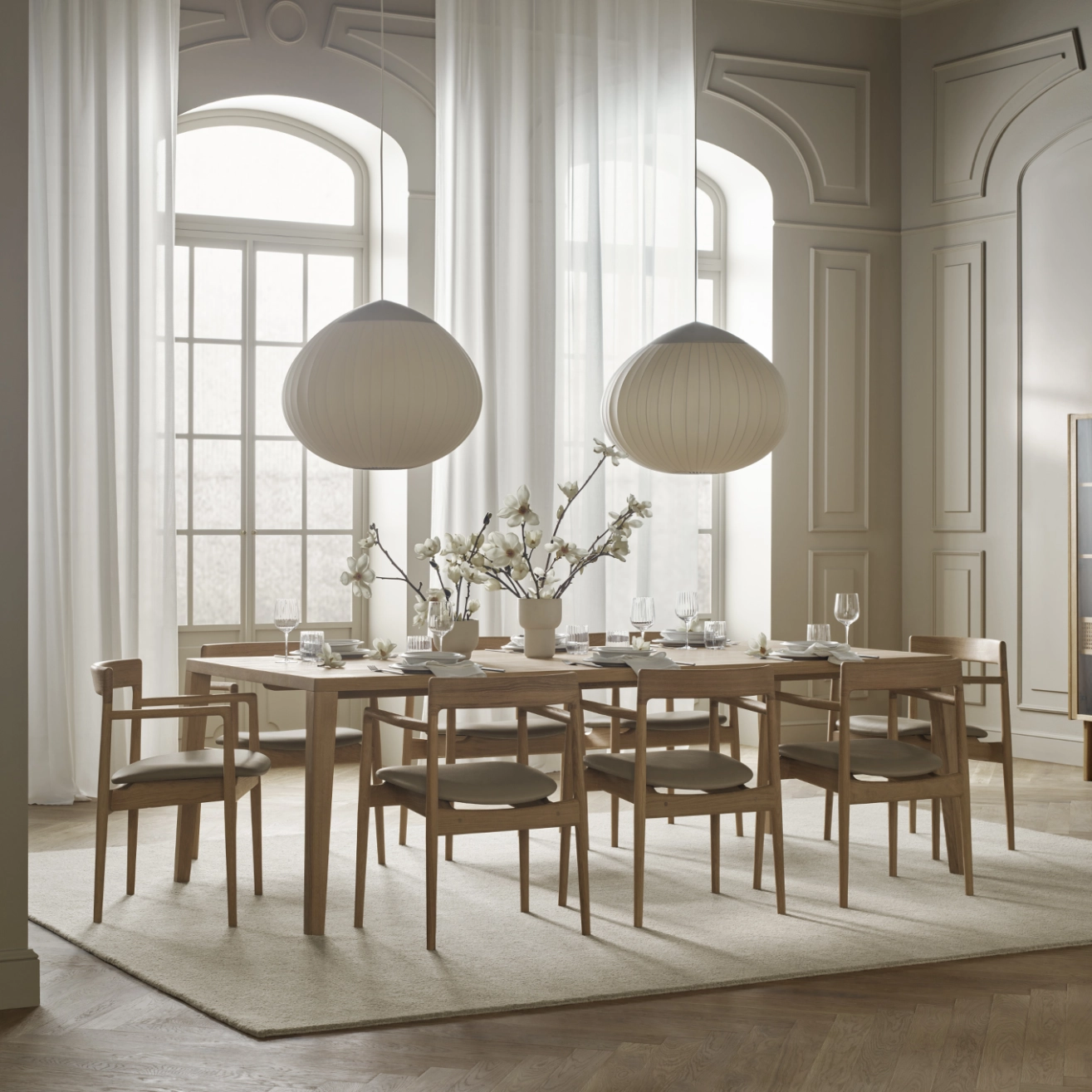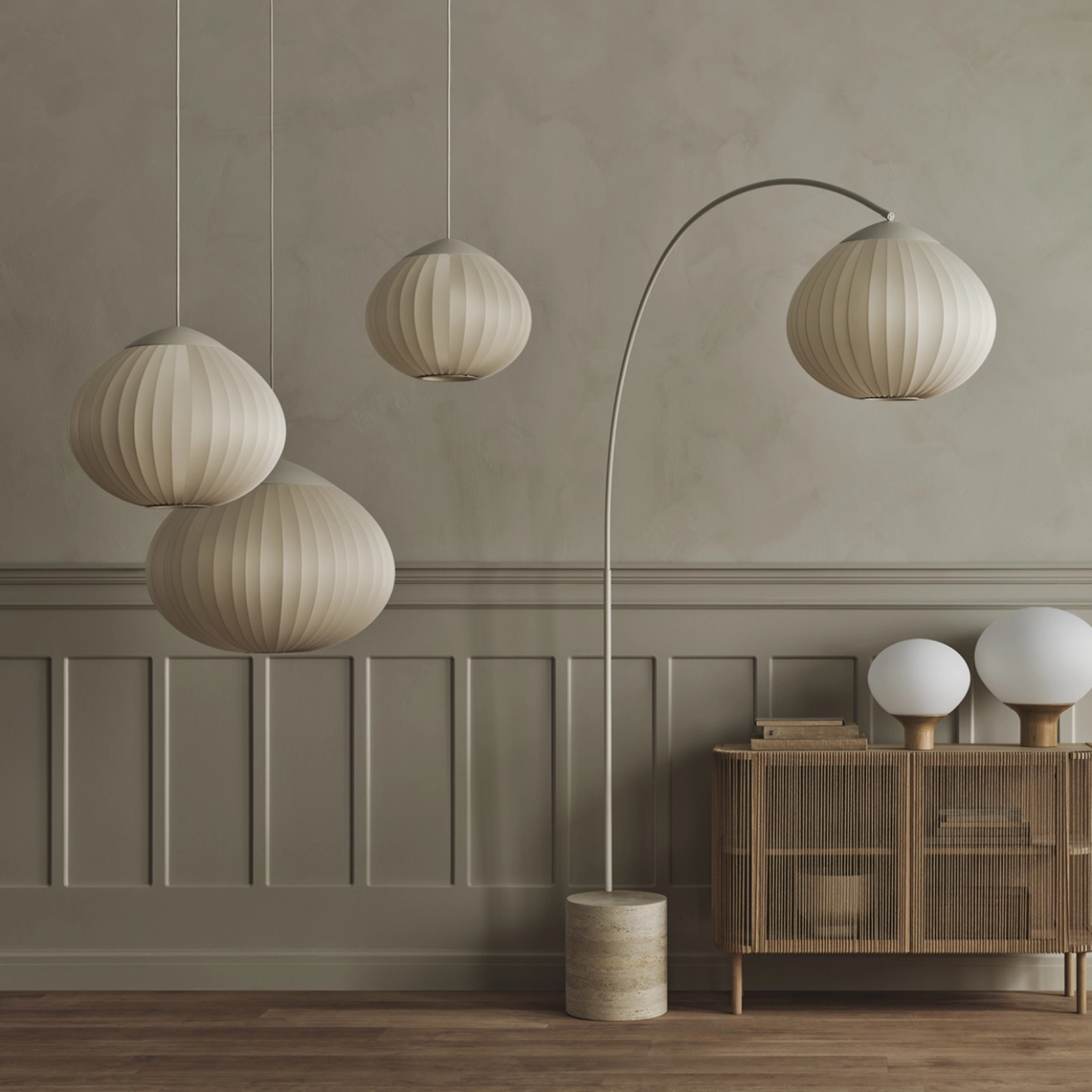 Élégante et minimaliste, la suspension Acorn de Bolia s’inspire de la nature et plus particulièrement de la forme organique d’un gland de chêne. Son design raffiné associe un abat-jour en verre opalin blanc à un détail en bois massif certifié FSC™, soulignant son caractère chaleureux et intemporel. Grâce à sa lumière douce et diffuse,Acorn crée une ambiance apaisante, idéale pour illuminer un salon, une salle à manger ou une chambre. Disponible en plusieurs tailles et couleurs, elle s’intègre harmonieusement dans tous les styles d’intérieur, qu’ils soient contemporains ou plus traditionnels. Avec son esthétique épurée et ses matériaux durables, la suspension Acorn de Bolia incarne parfaitement l’élégance scandinave.