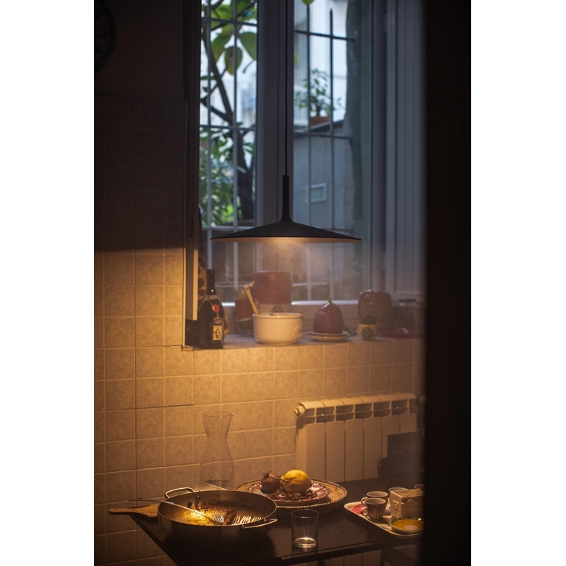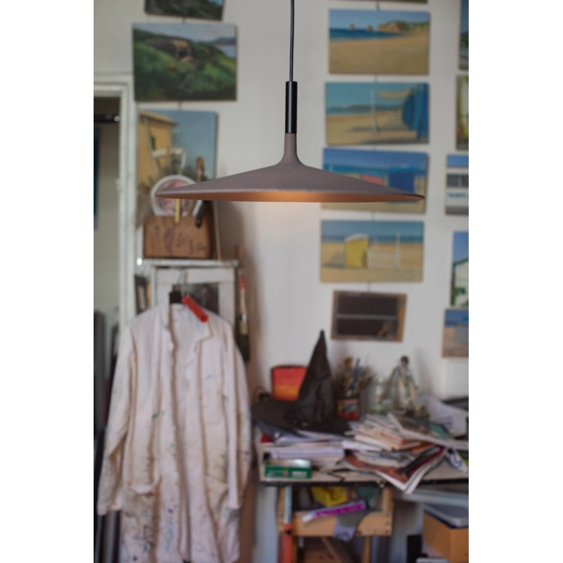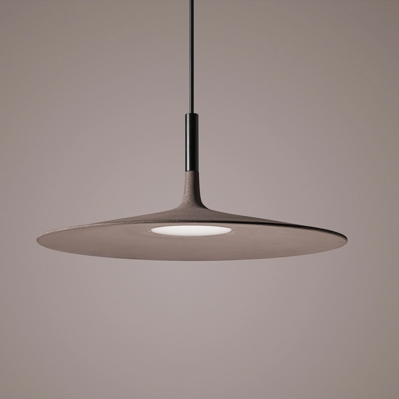 Aplomb est une collection de luminaires née de la volonté d’utiliser le ciment brut pour créer une suspension élégante. Editée par Foscarini, la collection de luminaires Aplomb met à l’honneur un ciment spécial obtenu à partir d’un mélange exclusif. Cette suspension présente un design léger, d’une grande élégance et avec des formes épurées, qui contrebalance la solidité massive du matériau, tout en exaltant la texture brute mais raffinée de ce matériau. Avec son design particulièrement ample et aplati, la suspension Aplomb Large présente un large rayon d’éclairage. Son design épuré lui permet de s’intégrer dans tous les styles d’espaces, domestiques ou collectifs. Aplomb est aussi disponible en version standard ou mini.