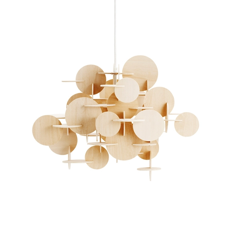 Bau est une suspension sculpturale conçue par la créatrice danoise Vibeke Fonnesberg Schmidt pour Normann Copenhagen. Elle crée un modèle unique et original, instaurant une nouvelle façon de penser la lumière : elle assemble des couleurs et des formes géométriques en rendant hommage au sculpteur américain Alexander Calder. Au départ, de simples disques en bois de pin sont assemblés tel un pêle-mêle, pour que le lustre prenne peu à peu la forme d'une sculpture unique, rompue par les différentes couleurs, les différentes tailles et les assemblages irréguliers des disques qui confèrent un aspect vivant, naturel telle une constellation en mouvement. La lampe Bau, qui signifie « construction » en allemand, est un exemple d'objet DIY (pour Do It Yourself, c'est-à-dire « fais-le toi-même »), car c'est vous qui composer vous-même votre luminaire. Le design de la lampe Bau est complexe : au premier abord, l'assemblage des disques semble fortuit, mais lorsque l'on examine la suspension de plus près, on s'aperçoit que rien n'est laissé au hasard, et les cercles créent un effet d'optique étonnant. Parfaite pour égayer une chambre d'enfant dans sa version colorée ou dans l'entrée pour la version naturelle.