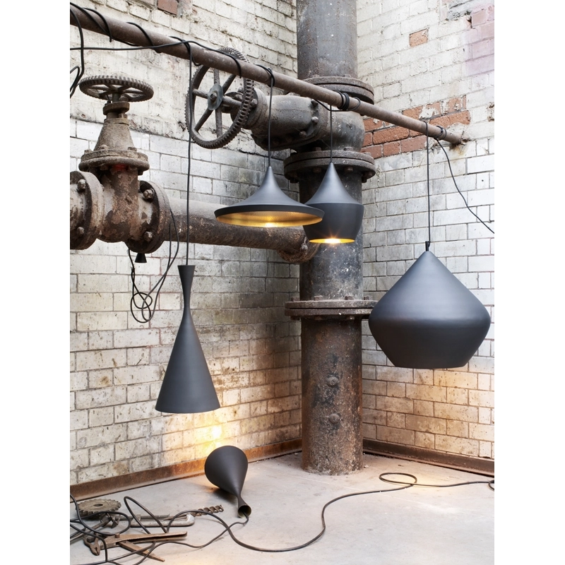 Beat light est une série de luminaires, dessinée par Tom Dixon, inspirée par la simplicité sculpturale des marmites de cuivre et des traditionnels vases indiens. Les pièces de laiton sont martelées à la main selon des techniques traditionnelles. L'extérieur du diffuseur est lisse contrastant avec les reliefs à l'intérieur. Les propriétés de réflexion du laiton permettent une diffusion efficace de la lumière. Déclinée en plusieurs couleurs, la collection Beat light est disponible dans les versions tall, fat, wide et stout qui peuvent être associées dans une composition de suspensions.