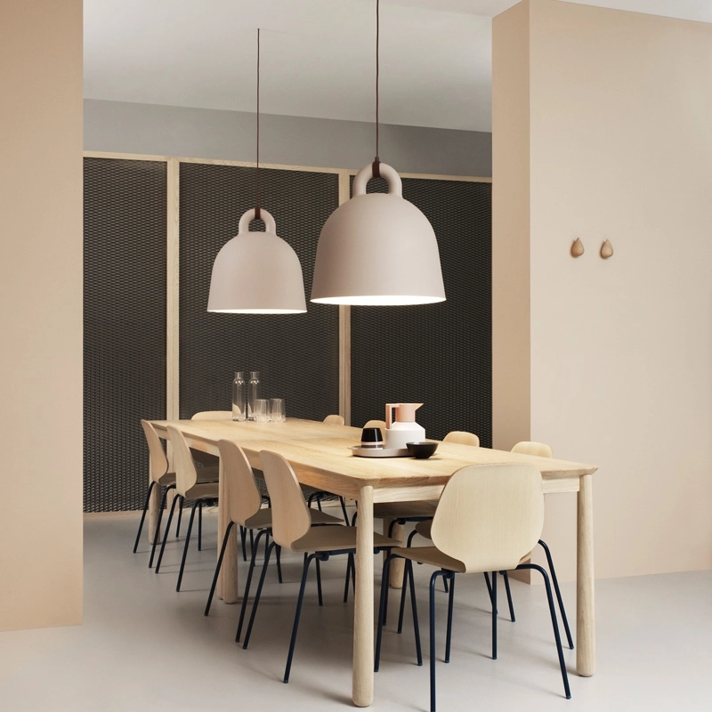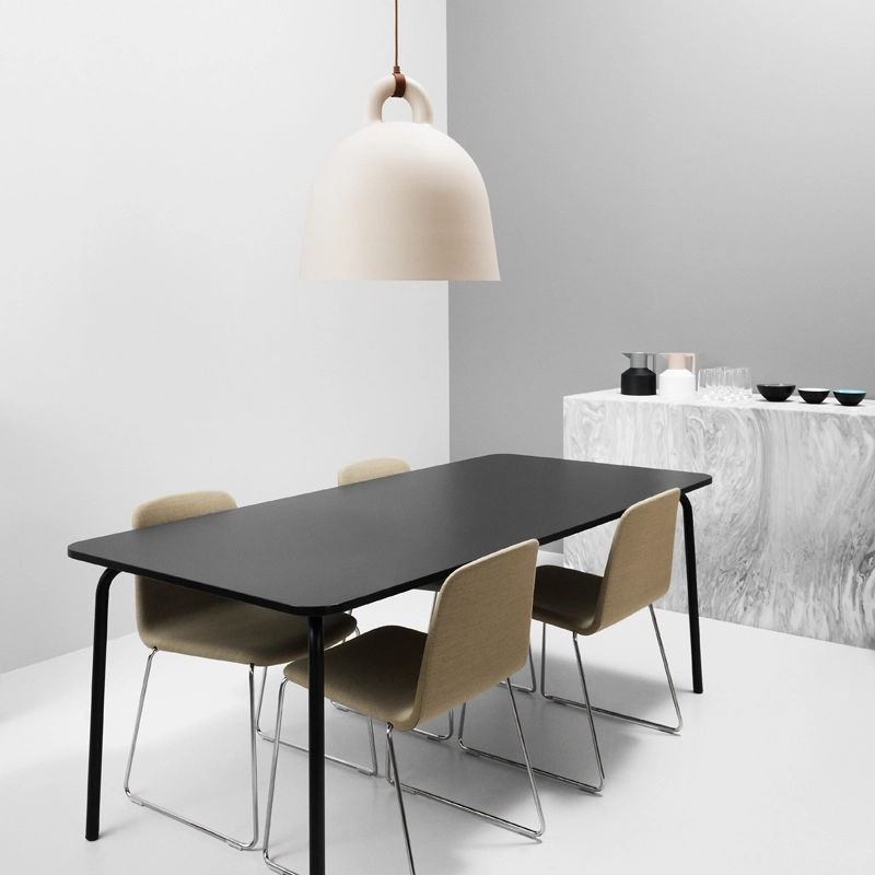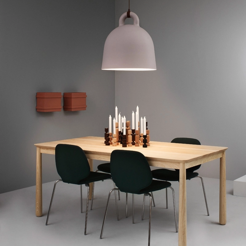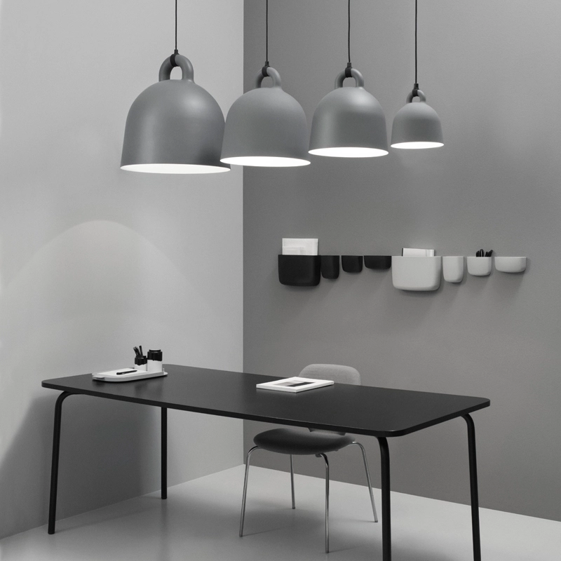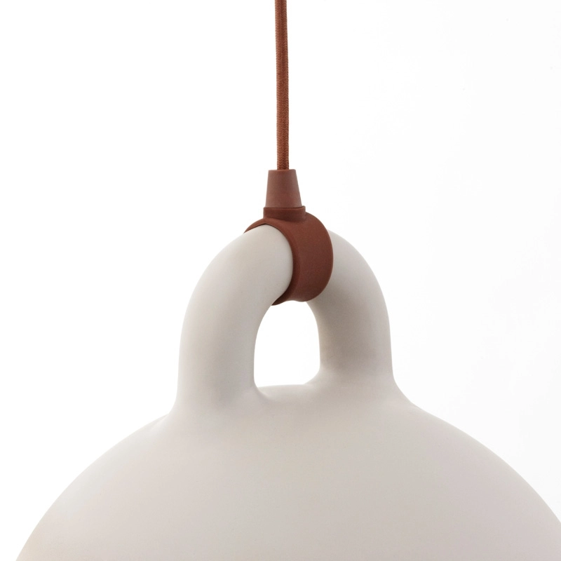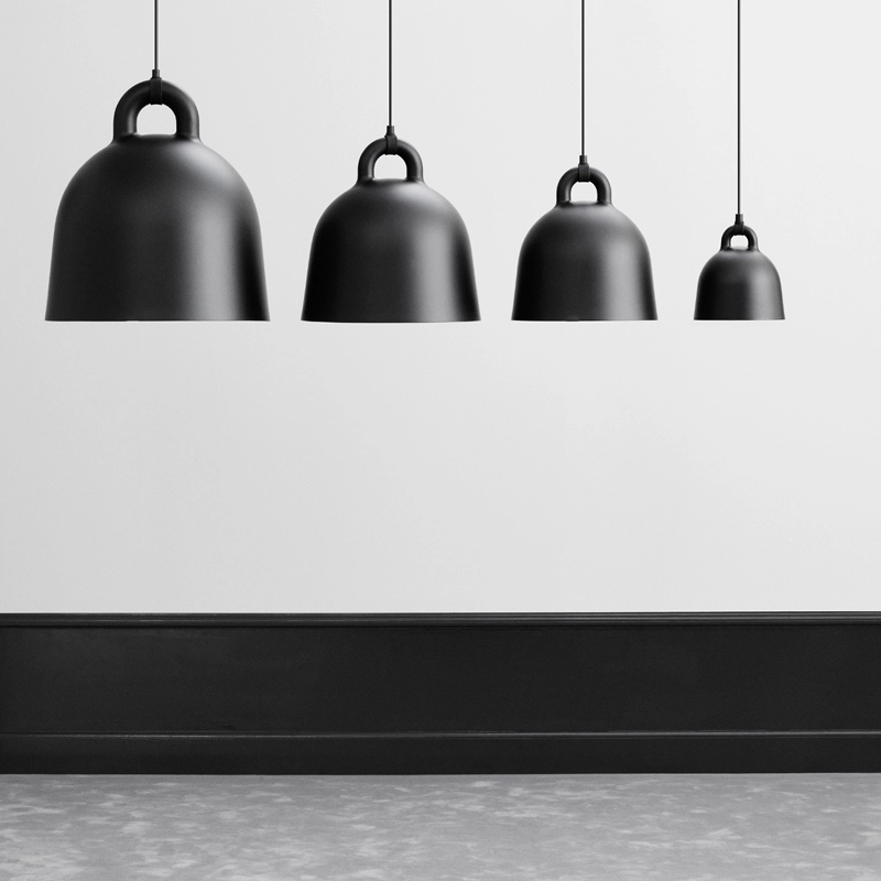 Une apparence robuste et un design sobre : ce sont les caractéristiques de la suspension Bell éditée par Normann Copenhagen. Elle prend la forme d'une cloche qui fourmille de détails sophistiqués. Sa surface lisse et arrondie donne l'impression que la lampe a été coulée d'une seule pièce et, plutôt que d'être dissimulé, le câble électrique est ici mis en avant de façon moderne et originale. Les designers Andreas Lund et Jacob Rudbeck créent une suspension originale et toute en contraste avec ses matériaux.  Elle diffuse une lumière directe qui modifie l'ambiance et crée de nouvelles expériences lorsque l'on se déplace autour. Sa paroi claire à intéieur réfléchit la lumière en forme de cône afin d'offrir une bonne source lumineuse, par exemple au-dessus de la table de la salle à manger. Bell se décline en deux tailles et deux associations de couleurs pour s'adapter à votre intérieur.