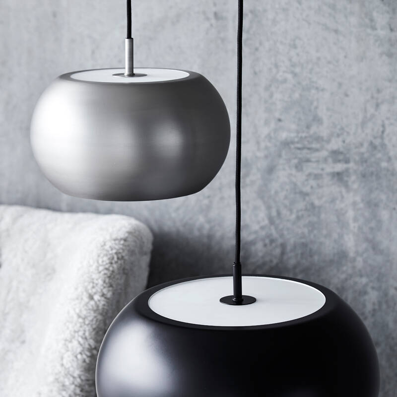 Les contrastes d'une expression douce et sphérique et d'un minimalisme aux lignes épurées ont été réunis dans cette série de lampes à la fois innovante et classique.