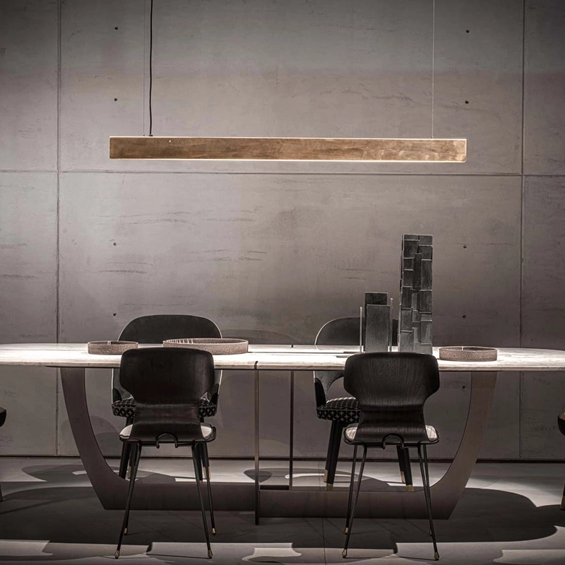 Blade est une collection de luminaires créée par Baxter. Fabriquée à partir de laiton satiné, la suspension est une pièce unique en son genre. La structure abrite une source lumineuse LED qui éclaire parfaitement une table de repas par exemple. Avec sa forme minimaliste et son matériau singulier, Blade s'adapte aussi bien à des ambiances contemporaines qu'à des intérieurs plus classiques.