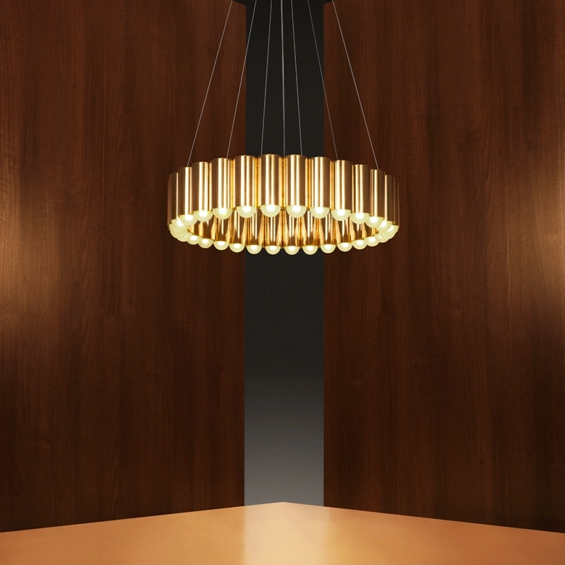 Créée par le designer Lee Broom, cette suspension a été inspirée par le manège d'une fête foraine traditionnelle britannique. Chaque cylindre qui compose le luminaire accueille une ampoule LED, créant un anneau de lumière spectaculaire. Disponible en version bronze, or, chrome ou noir mat, Carousel est suspendu par un des fils en acier et un câble transparent. A la fois légère et imposante, cette sculpture lumineuse flotte élégamment dans l'espace.