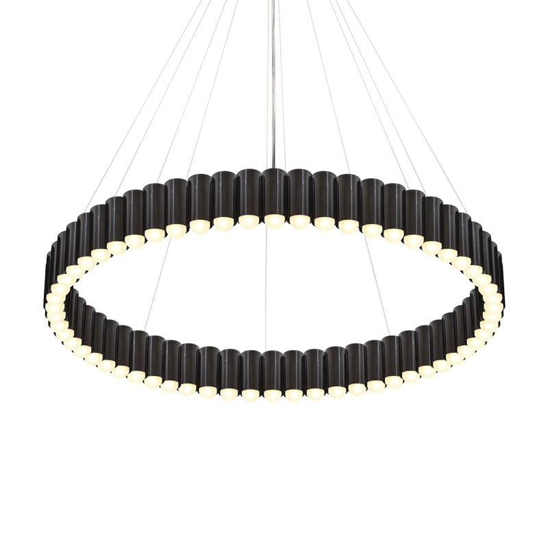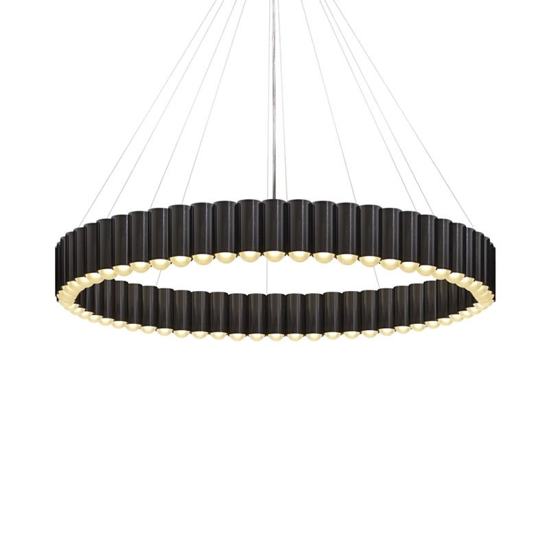 Créée par le designer Lee Broom, cette suspension a été inspirée par le manège d'une fête foraine traditionnelle britannique. Chaque cylindre qui compose le luminaire accueille une ampoule LED, créant un anneau de lumière spectaculaire. Disponible en version bronze, or, chrome ou noir mat, Carousel est suspendu par un des fils en acier et un câble transparent. A la fois légère et imposante, cette sculpture lumineuse flotte élégamment dans l'espace.