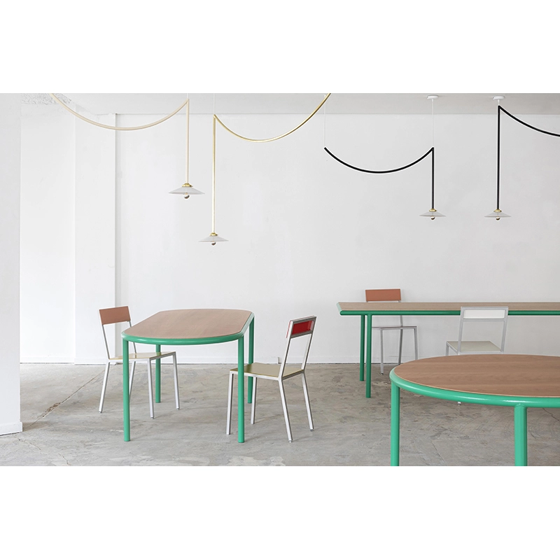 C’est pour le cinquième anniversaire de Valerie Objects que le duo de designers Muller Van Severen a créé deux nouveaux luminaires avec une ambiance de fête. Les suspensions Ceiling Lamp n°4 et n°5 reprennent la forme de guirlandes et de serpentins, dessinant des lignes ludiques et colorées dans l'espace. La structure de Ceiling Lamp est en acier, donc inflexible. Ces luminaires frivoles sont disponibles dans les couleurs ludiques méticuleusement sélectionnées, si typiques de l'œuvre de Muller Van Severen. « Nous voulons inciter les gens à revoir l'architecture de la maison, les murs et le plafond », explique Hannes Van Severen. Ces plafonniers guident l'œil. C'est ce que le design devrait faire : relier la pièce ensemble pour créer une seule histoire, celle du propriétaire. La collection de suspensions Ceiling Lamps se décline dans cinq modèles différents afin de s’adapter au mieux à votre décoration.