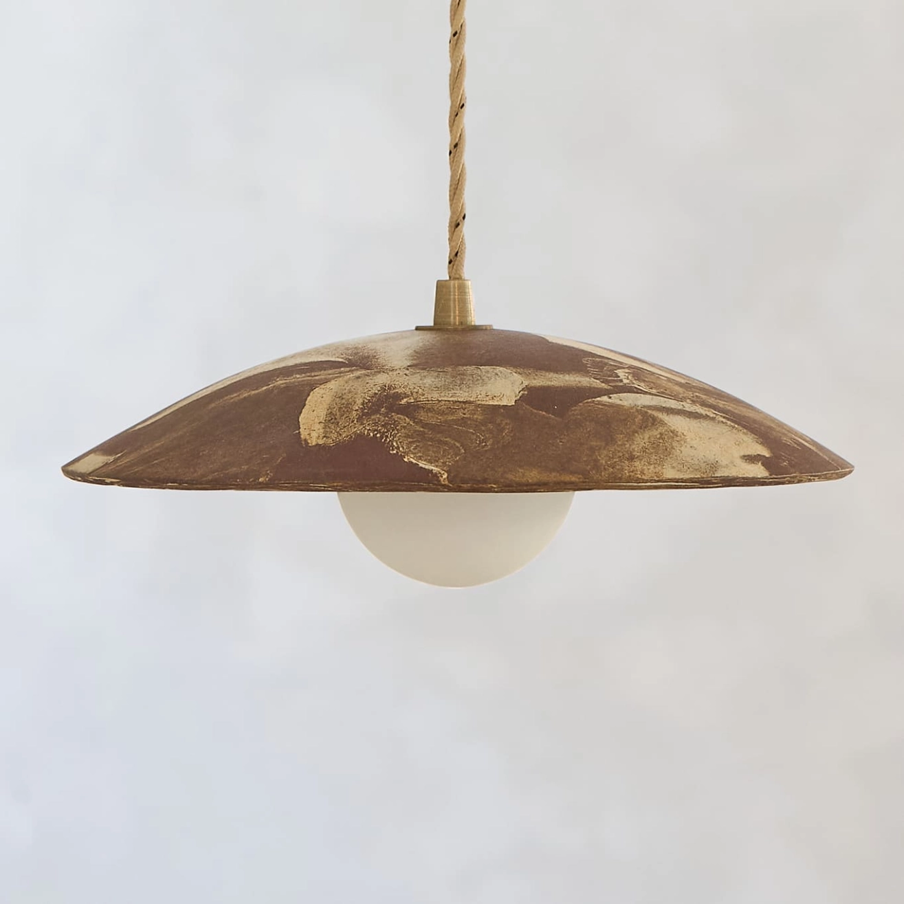 Ancrée dans l’héritage culturel local, la Ceramic Suspension de Contain révèle une interprétation contemporaine des matières et des formes. À travers cette création, la marque met en lumière la richesse des ressources natives, qu’elle associe à une approche innovante du design et à des technologies actuelles afin de concevoir des pièces au caractère singulier. Sa hauteur est personnalisable afin de s’adapter aux différentes configurations d’espace et aux besoins spécifiques de chaque projet. Cette collection est le fruit d’une collaboration privilégiée avec l’artisan majorquin Paco Romero, fondateur de Cerámica Primitiva. De cette rencontre naissent des luminaires où la matière et la lumière se répondent avec intensité et authenticité. Installé à Galilea, petit village situé dans les montagnes de la Tramuntana à Majorque, Paco Romero façonne chaque Ceramic Suspension selon un procédé entièrement manuel. Il travaille l’argile sans recourir au tour de potier, utilisant exclusivement des outils naturels comme des pierres, des galets ou du bois. Son approche, instinctive et brute, confère à chaque pièce une empreinte personnelle et une texture unique. La production, volontairement limitée, s’inscrit dans un rythme lent et réfléchi, laissant à chaque objet le temps nécessaire à son élaboration. À travers cette suspension, Contain propose une collection où tradition artisanale et création contemporaine s’unissent pour surprendre et inspirer.