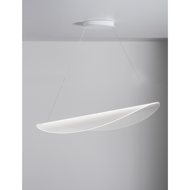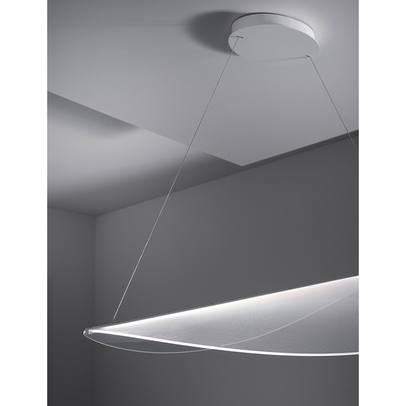 La suspension Diphy fait partie d'une collection de pétales lumineux et transparents créés par le designer italien Mirco Crosatto pour la maison Stilnovo. La collection Diphy combine une esthétique organique avec une âme technologique. La source centrale transmet la lumière aux bords sinueux et aux micro incisions des surfaces, créant ainsi un éclairage d'ambiance doux et homogène. La technologie OptiLight™ permet à la suspension Diphy de disparaître de la vue lorsqu'elle est éteinte et de réapparaître comme par magie lorsqu'elle est allumée. Ce modèle de suspension Diphy est disponible en 3 tailles différentes : 54, 76 et 96 cm de diamètre.