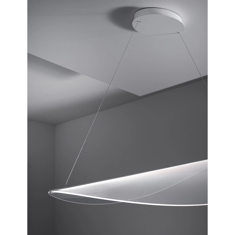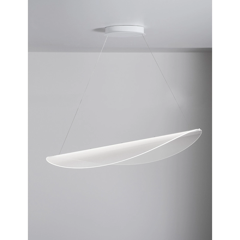 La suspension Diphy fait partie d'une collection de pétales lumineux et transparents créés par le designer italien Mirco Crosatto pour la maison Stilnovo. La collection Diphy combine une esthétique organique avec une âme technologique. La source centrale transmet la lumière aux bords sinueux et aux micro incisions des surfaces, créant ainsi un éclairage d'ambiance doux et homogène. La technologie OptiLight™ permet à la suspension Diphy de disparaître de la vue lorsqu'elle est éteinte et de réapparaître comme par magie lorsqu'elle est allumée. Ce modèle de suspension Diphy est disponible en 3 tailles différentes : 54, 76 et 96 cm de diamètre.