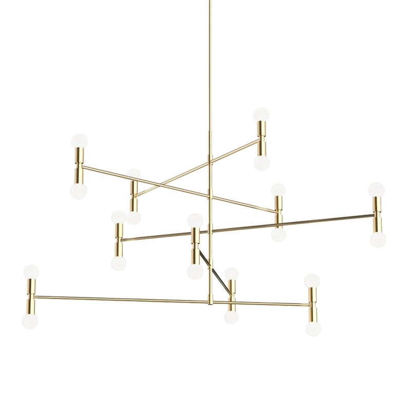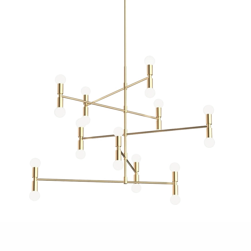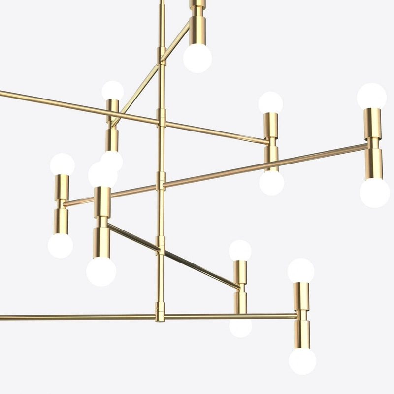 suspension Dot 14 se distingue grâce à ses longues branches en laiton et ses vingt ampoules articulées autour d’une tige principale. Le résultat est une pièce atypique qui ne manquera pas d'ajouter une touche d'audace et d’élégance à votre intérieur. La tige de la suspension Dot 14 de