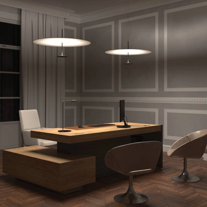 Editée par Lumina, DOT est une suspension minimaliste qui ressemble à un disque de lumière flottant. C'est un assemblage de deux disques parallèles reliés par une tige métallique. Le réflecteur a une finition blanche super «mat» , tandis que le disque plus petit contient un anneau de LED qui réfléchit la lumière vers le disque réflecteur plus grand. Un “heat pipe” étudié sur mesure transfère la chaleur de la source lumineuse vers le dissipateur de chaleur caché dans le réflecteur. Dot présente une approche innovante en matière de technologie de lentille et de dissipation de chaleur. Au-dessus d’une table de repas ou d’un bar, la suspension Dot peut être utilisée seule ou en composition de plusieurs éléments.