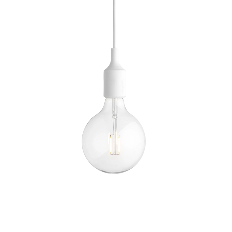 E27 est une suspension créée par Mattias Stahlbom. Le designer met l'ampoule à nue montrant la beauté pure de cette lampe de 12,5cm de diamètre. Le cordon électrique, se faisant discret habituellement, est ici mis en avant. Editée par Muuto, l'ampoule E27 se décline en un large choix de couleurs : rouge, jaune, bleu, gris, violet, noir, dans les couleurs pastel du printemps : rose, vert clair et gris clair. E27 est désormais disponible en orange. Dans le cas d'une commande de plusieurs suspensions, il est fortement recommandé de commander également la rosace multiple adaptée.