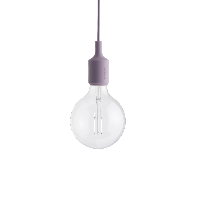 E27 est une suspension créée par Mattias Stahlbom. Le designer met l'ampoule à nue montrant la beauté pure de cette lampe de 12,5cm de diamètre. Le cordon électrique, se faisant discret habituellement, est ici mis en avant. Editée par Muuto, l'ampoule E27 se décline en un large choix de couleurs : rouge, jaune, bleu, gris, violet, noir, dans les couleurs pastel du printemps : rose, vert clair et gris clair. E27 est désormais disponible en orange. Dans le cas d'une commande de plusieurs suspensions, il est fortement recommandé de commander également la rosace multiple adaptée.