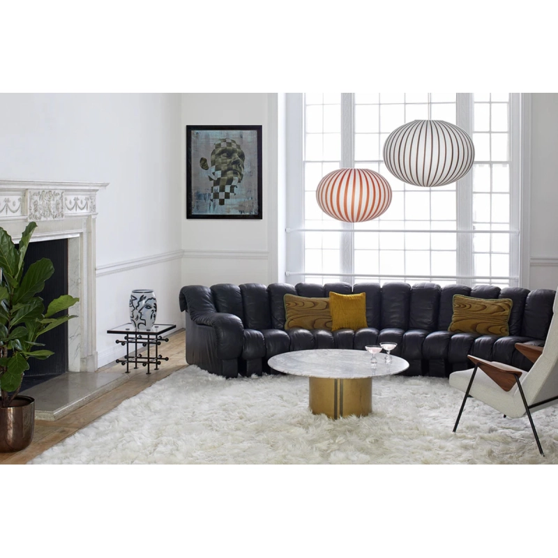 Dessinée par Sebastian Wrong pour Established & Sons, la collection de luminaires Filigrana exploite la maitrise et l’héritage du verre soufflé vénitien traditionnel. Cette série fusionne une technique du 16ème siècle venant de Murano avec une esthétique moderne, pour créer un luminaire hypnotisant, dont les rayures font penser à un sucre d’orge. Chaque luminaire Filigrana est unique, grâce au procédé artisanal utilisé. Le verre est soufflé à la bouche par des artisans hautement qualifiés. Disponible dans de nombreuses dimensions et plusieurs couleurs, Filigrana émet une lumière douce et diffuse. Introduite pour la première fois en 2018, cette lampe reconnaissable instantanément apporte une touche joyeuse et graphique dans tous types d’espaces. La suspension Filigrana peut être utilisée seule ou en composition de plusieurs éléments pour créer des combinaisons uniques.