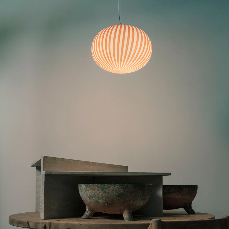 Dessinée par Sebastian Wrong pour Established & Sons, la collection de luminaires Filigrana exploite la maitrise et l’héritage du verre soufflé vénitien traditionnel. Cette série fusionne une technique du 16ème siècle venant de Murano avec une esthétique moderne, pour créer un luminaire hypnotisant, dont les rayures font penser à un sucre d’orge. Chaque luminaire Filigrana est unique, grâce au procédé artisanal utilisé. Le verre est soufflé à la bouche par des artisans hautement qualifiés. Disponible dans de nombreuses dimensions et plusieurs couleurs, Filigrana émet une lumière douce et diffuse. Introduite pour la première fois en 2018, cette lampe reconnaissable instantanément apporte une touche joyeuse et graphique dans tous types d’espaces. La suspension Filigrana peut être utilisée seule ou en composition de plusieurs éléments pour créer des combinaisons uniques.