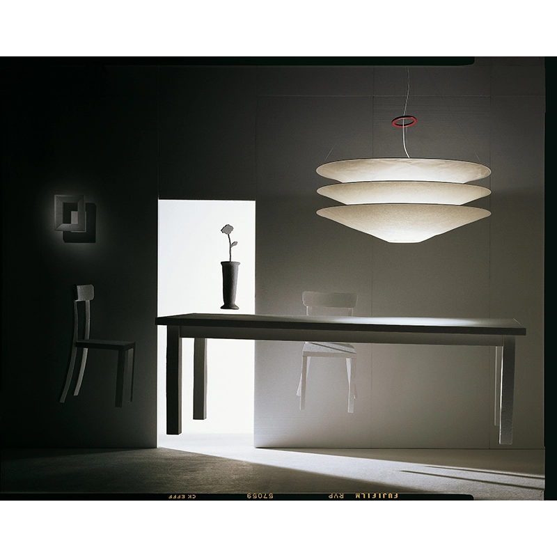 La suspension Floatation d’Ingo Maurer allie élégance et sobriété. Elle est fabriquée à partir de papier japonais et de métal et dispose d'un anneau rouge en fer qui permet de régler la hauteur de la suspension. Parfaite pour apporter à la fois de la lumière et une touche sculpturale dans une pièce, elle est disponible en trois dimensions : 75 cm, 100 cm et 120 cm. La suspension Floatation d'Ingo Maurer est donc parfaite si vous cherchez une source de lumière à la fois douce et efficace pour illuminer votre intérieur.