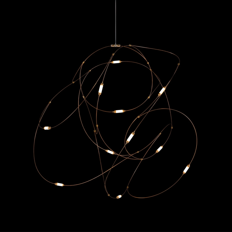 câble en bronze, sources lumineuses en bronze avec diffuseurs en polycarbonate semi-transparent