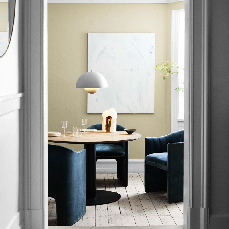 En 1968 la révolte des étudiants à Paris, à Rome et aux Etats-Unis renversaient les vieilles valeurs trop sévères et engageaient la génération « Flower-Power » faite de paix, d'amour et d'harmonie. La même année, Stanley Kubrick imaginait le futur, l'an 2001, mettant en vedette la chaise Panton devenue un classique du design, et l'homme était sur le point de poser le pied sur la lune. Dans le monde du design, une suspension colorée et ludique fleurissait dans les restaurants, les expositions et bientôt dans nos maisons. La lampe FlowerPot, avec ses deux demi sphères face à face, présente un design intemporel et de qualité, édité par & Tradition. Avec un large choix de couleurs, la collection FlowerPot s'invite dans la cuisine avec le modèle suspension, sur une table de chevet ou dans le salon, dans sa version lampe à poser.