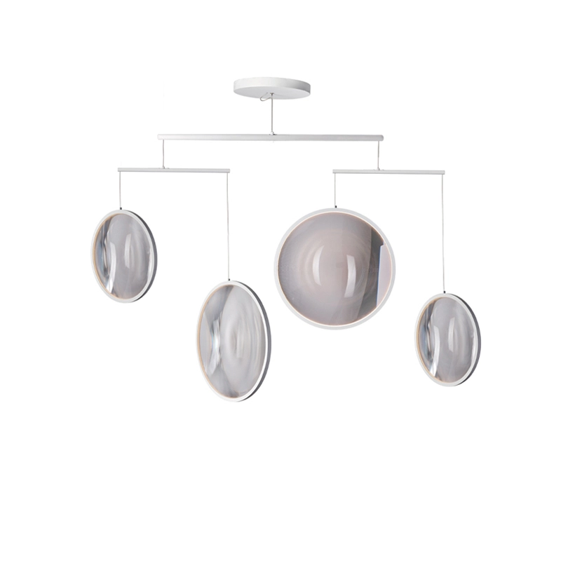 Avec Focus, le designer Yuji Okitsu s’est inspiré de l’astronomie et des bulles de savon pour créer une collection de suspensions oniriques. Disponible en trois modèles, Focus de DCW est une suspension composée de disques lumineux suspendus à la manière d’un mobile. C’est un luminaire aérien et poétique aussi beau allumé qu’éteint. Une véritable sculpture lumineuse qui habite l’espace et le transforme. Les lentilles de différentes tailles de Focus sont comme des loupes et modifient la perception de l’environnement selon d’où on regarde le luminaire. Ce lustre majestueux DCW trouve sa place dans un salon ou une grande entrée, et apporte une touche de douceur et de légèreté.