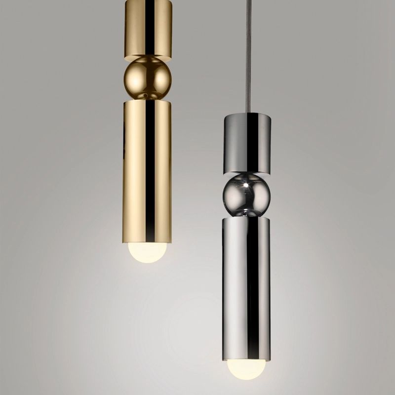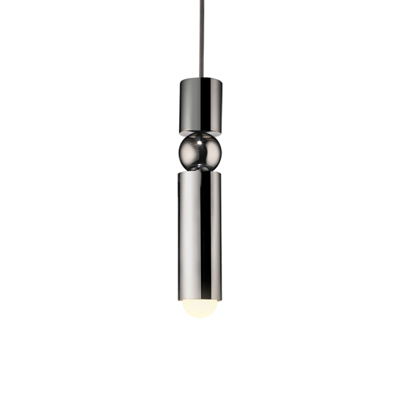 Imaginée et éditée par le talentueux Lee Broom, Fulcrum est une suspension fine et élégante. Telle une sculpture minimaliste, elle composée de deux cylindres réunis par une sphère centrale. L'ampoule visible imite symétriquement la silhouette de la sphère. Déclinée en version chrome, laiton et noir mat, Fulcrum est également disponible en lustre composé de 5 pièces.