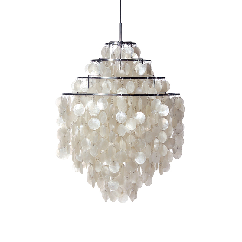 Beaucoup considèrent la collection Fun comme l'un des plus grands chefs-d'œuvre de Verner Panton dans le domaine de la conception d'éclairage. Depuis 1964, cette suspension suscite la joie et une richesse d'histoires. Composée de dizaines de disques coquillage, suspendus à une structure métallique à 4 anneaux, le suspension Fun 0DM Verpan saura illuminer avec élégance votre intérieur.